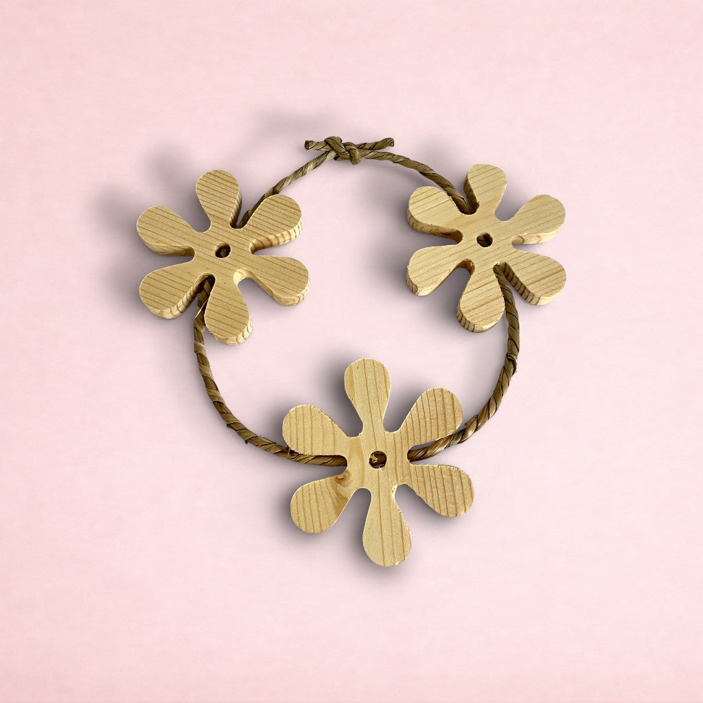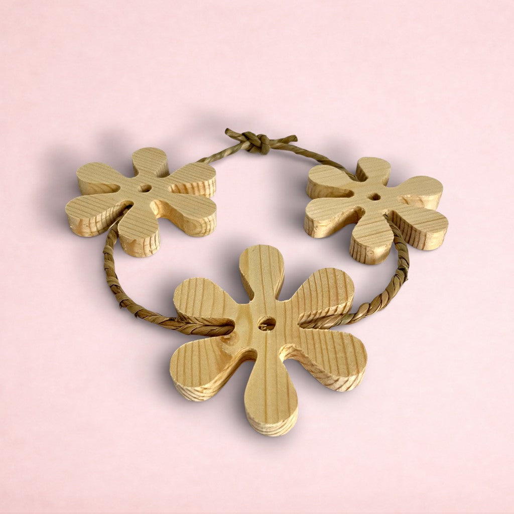 Our daisy chain toy is the ultimate playtime accessory for your furry friend! Made with untreated pinewood and woven together with natural and safe seagrass twine, this toy is designed to encourage your pet to engage in playful and stimulating activity. Your pet will love to throw it around, chew on it, and have an all-around blast! Plus, the daisy chain design is as cute as can be and will add a fun and whimsical touch to your pet's living space.