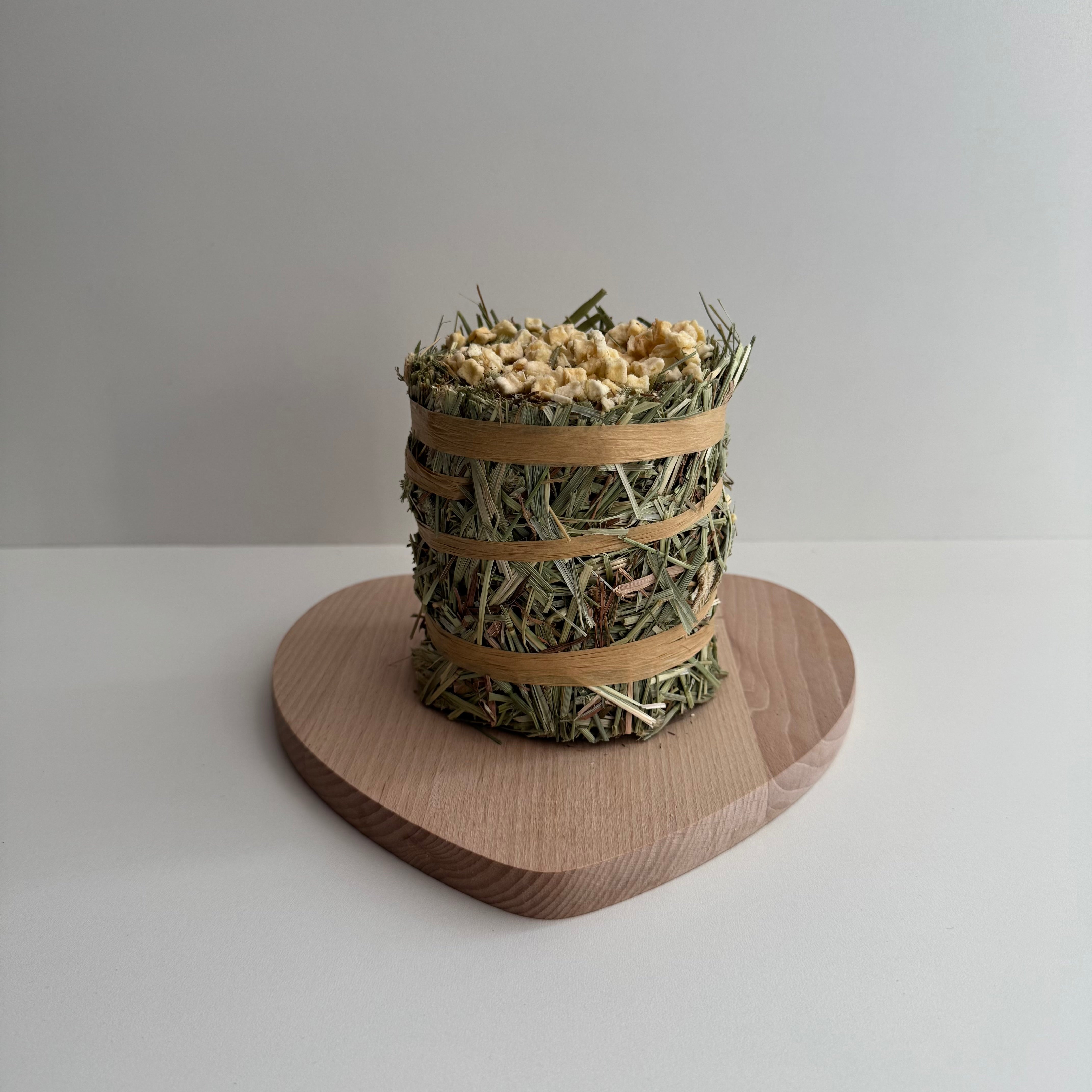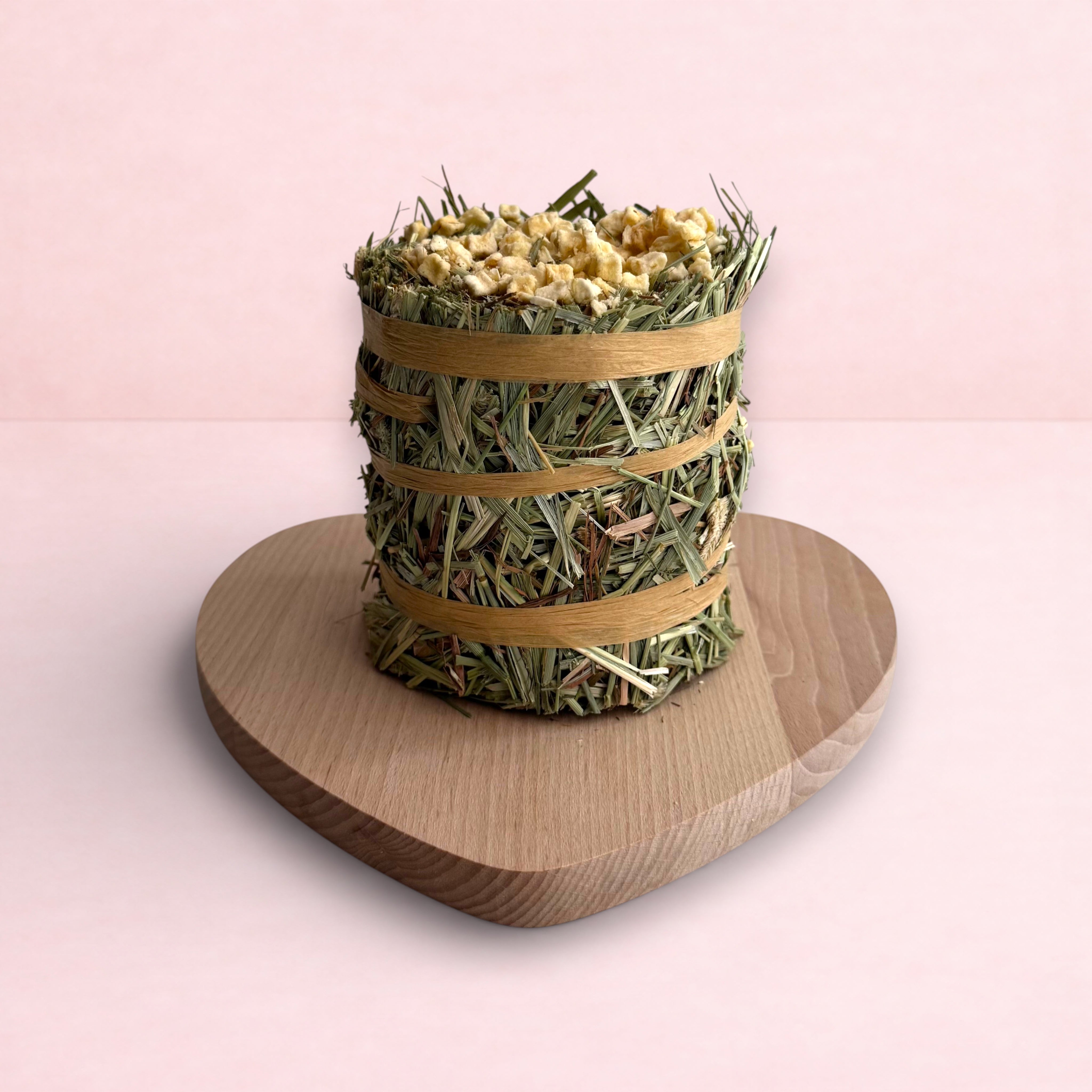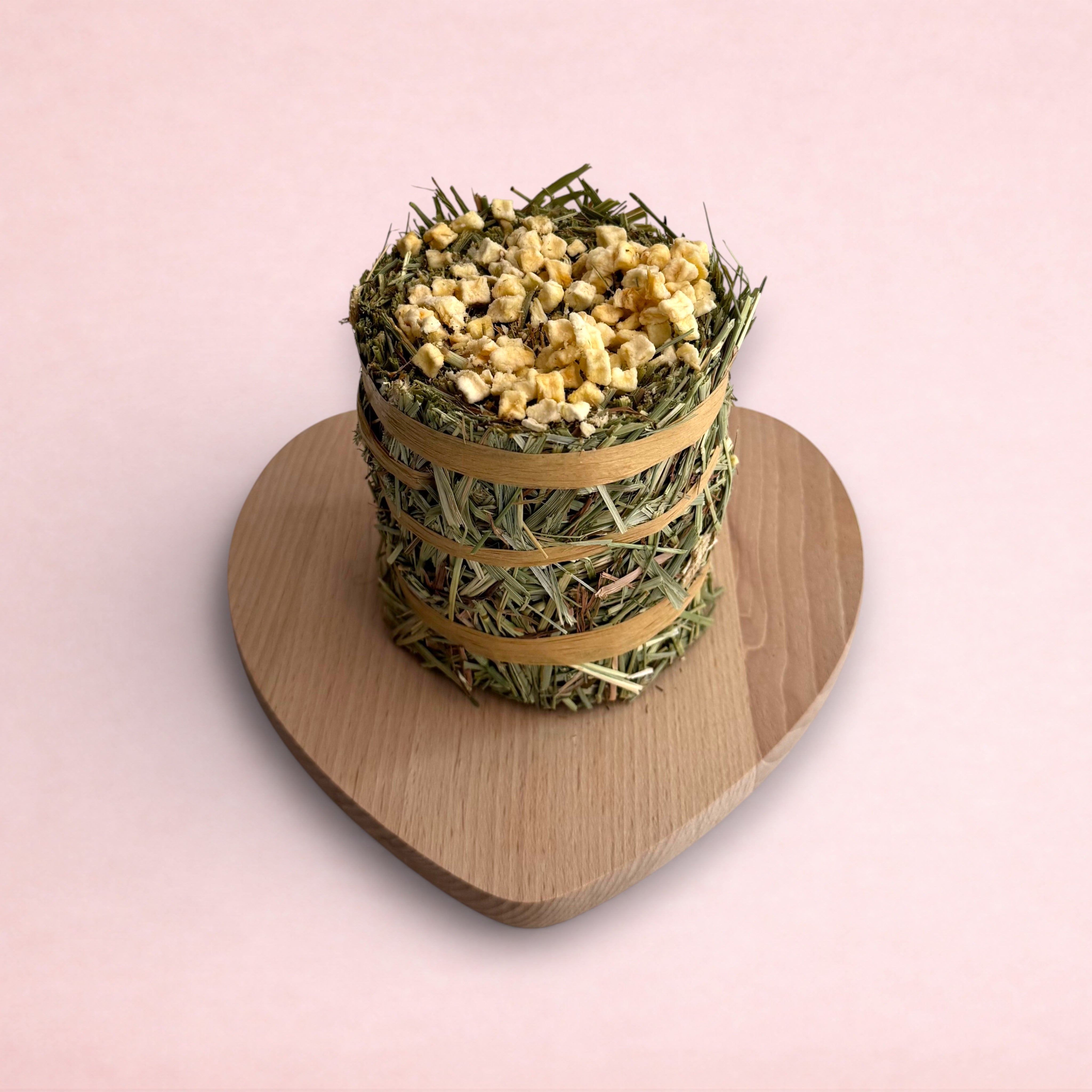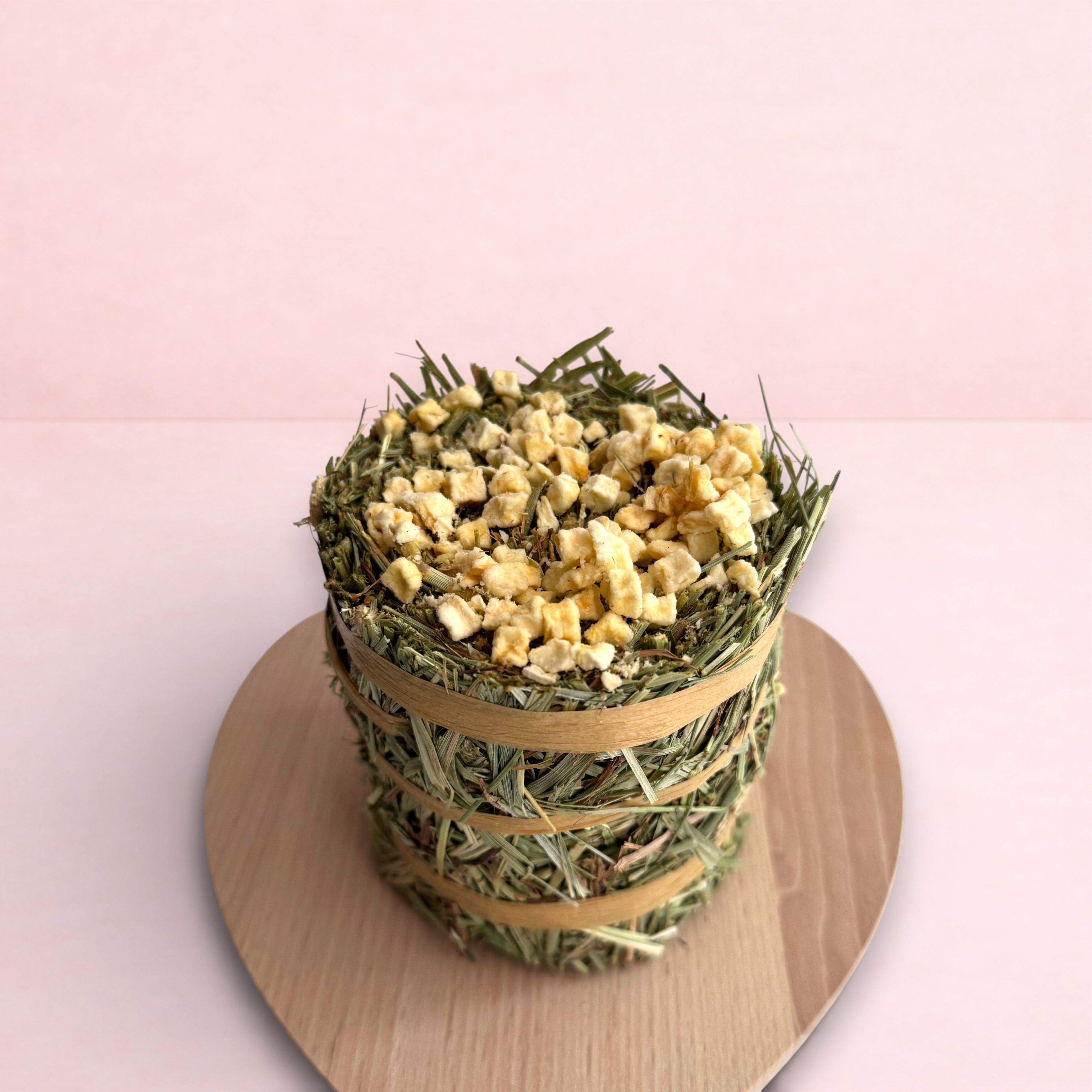 Made using only premium Canadian timothy hay, these hay rolls make a fantastic & nutritious enrichment treat that’s packed full of healthy dietary fibre! These beautiful rolls are formed under just the perfect amount of pressure to create a mini bale that’s bound using a 100% natural paper strap, each bale is then topped with a generous portion of tasty apple.