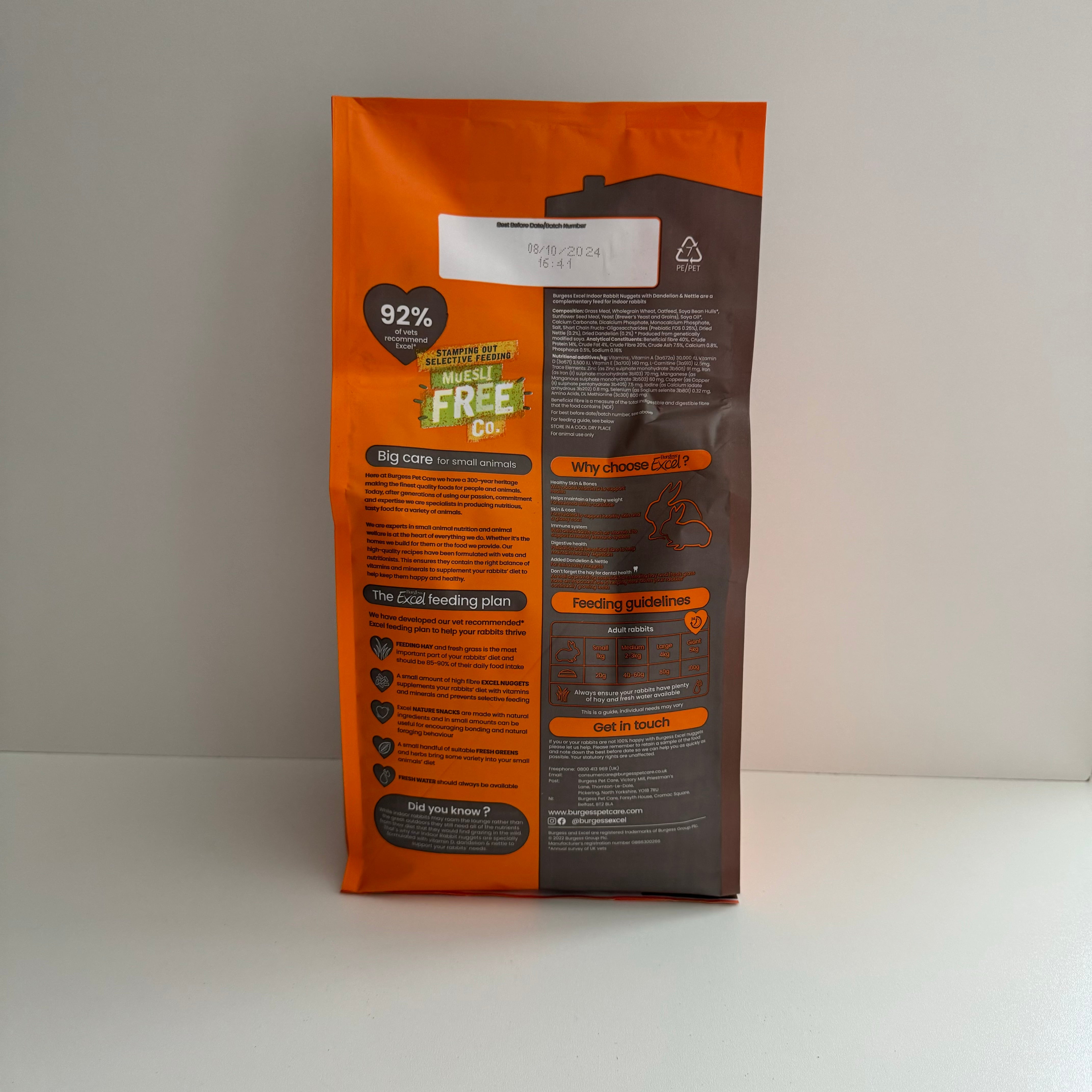 While indoor rabbits may roam the lounge rather than the great outdoors they still need all of the nutrients from their diet that they would find grazing in the wild. That’s why Burgess Excel Indoor Rabbit nuggets are specially formulated with vitamin D, dandelion & nettle to support your rabbits’ needs. Suitable for adult, indoor rabbits aged 16 weeks+