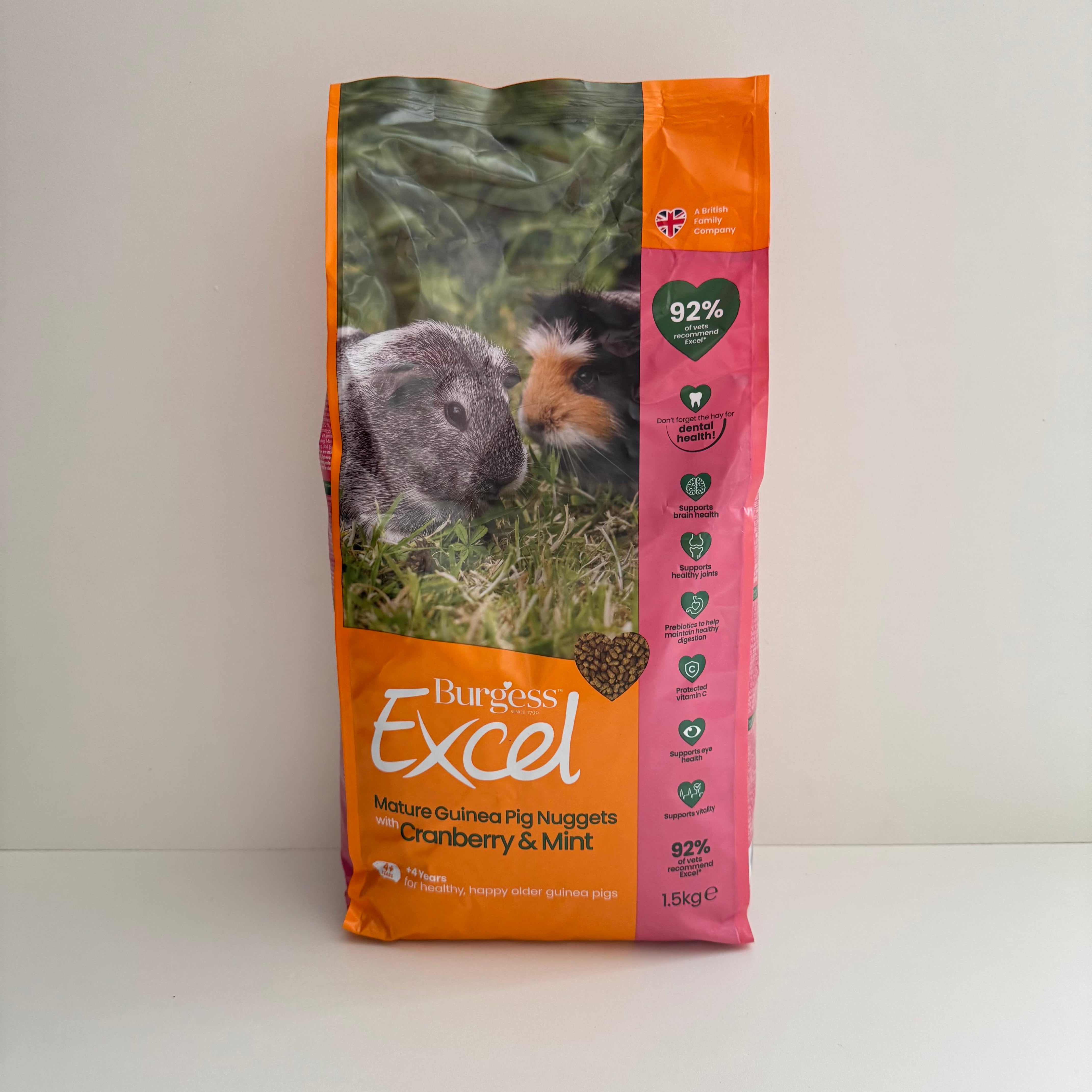 Burgess Excel Mature Guinea Pig is a high-quality recipe which has been formulated with vets and nutritionists. This ensures they contain the right balance of vitamins and minerals to supplement your aged 4+ mature guinea pigs’ diet to help keep them happy and healthy.