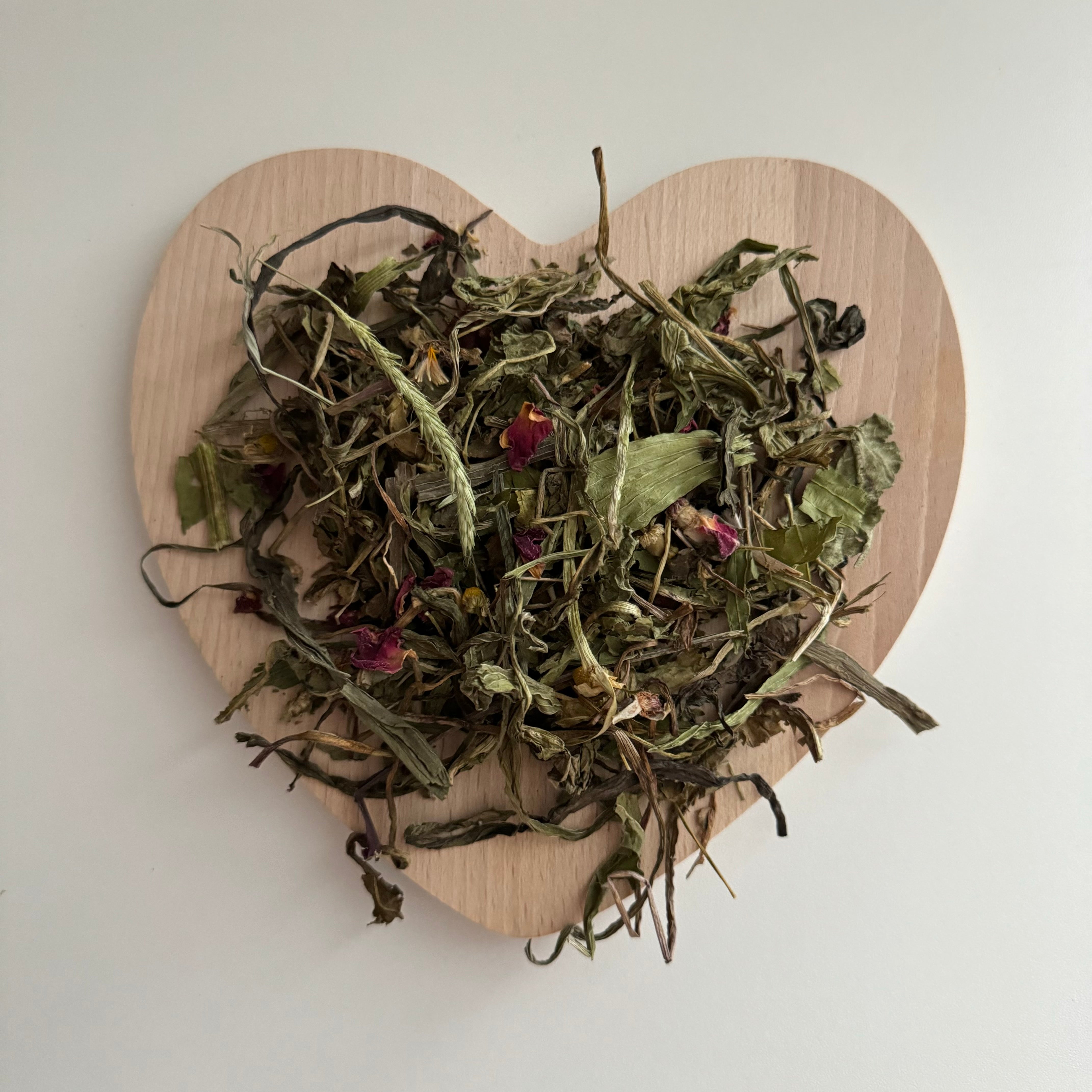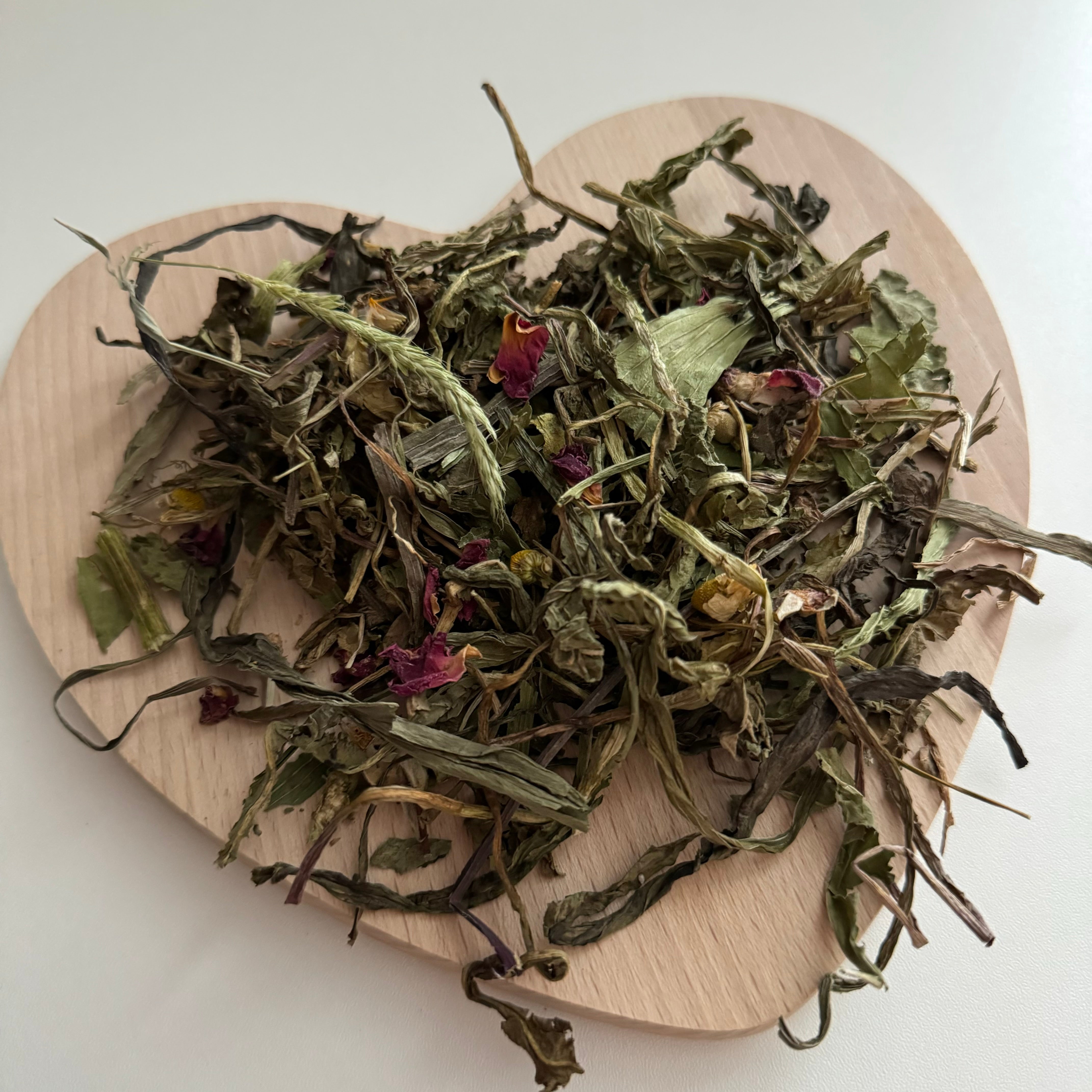 Composition: Echinacea Leaves, Dandelion Leaves, Ribwort, Rose Flowers, Lemon Balm, Chamomile Flowers, Lavender.