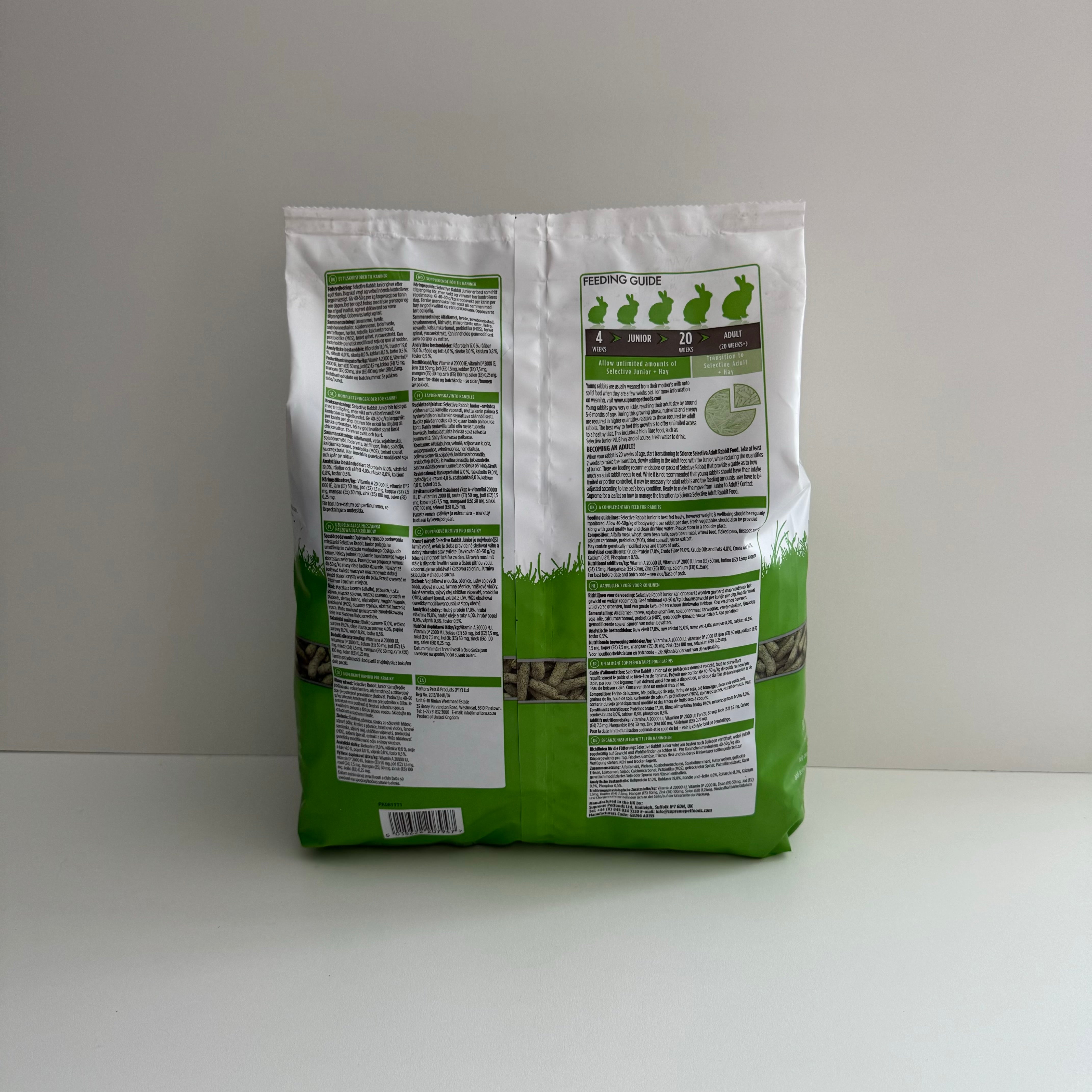 Always make sure you gradually transition your rabbit to Science Selective food over a period of 10-14 days. Start by mixing a small amount of Selective with their current food, gradually decreasing the old diet while increasing the amount of Selective. Avoid sudden changes in diet which can lead to digestive issues.