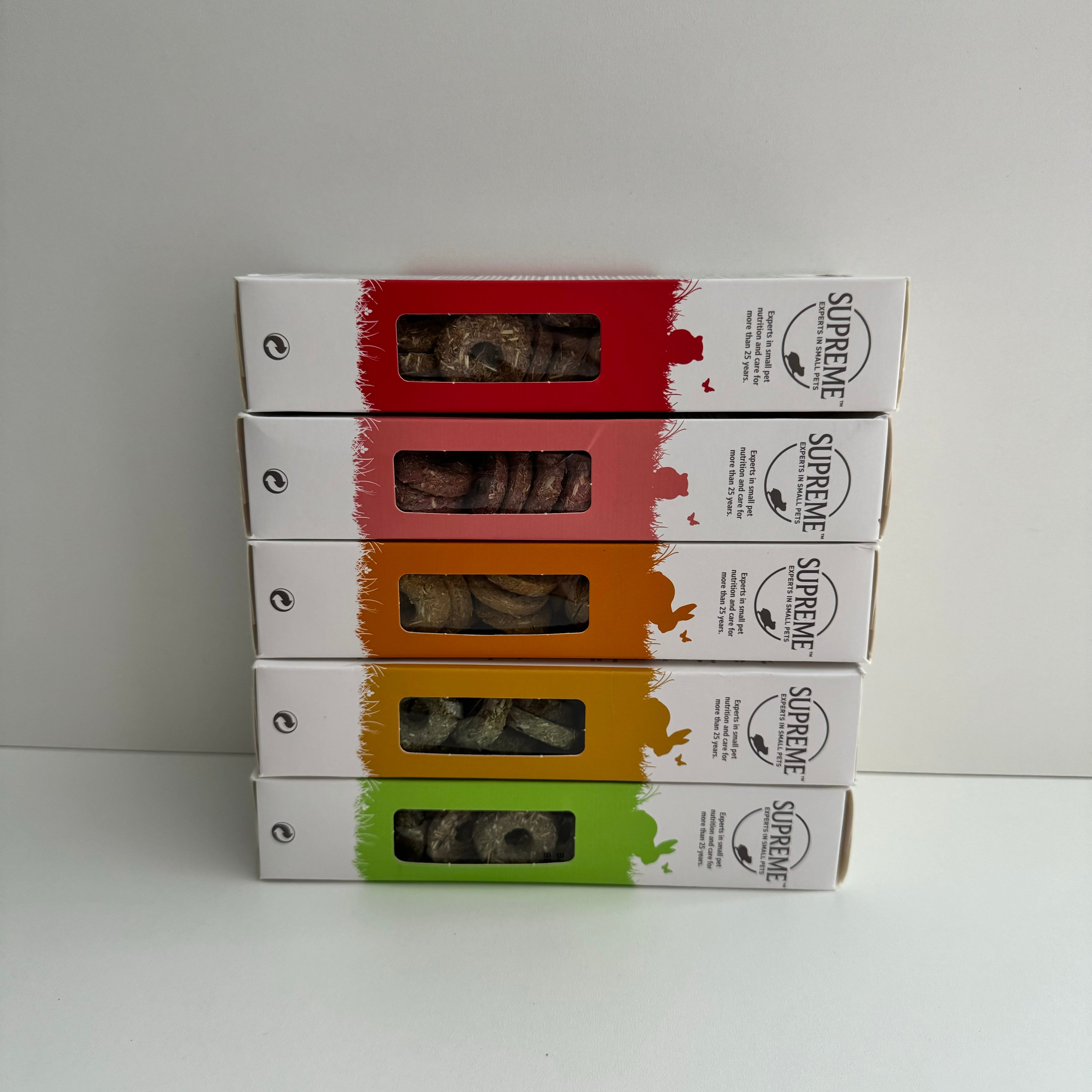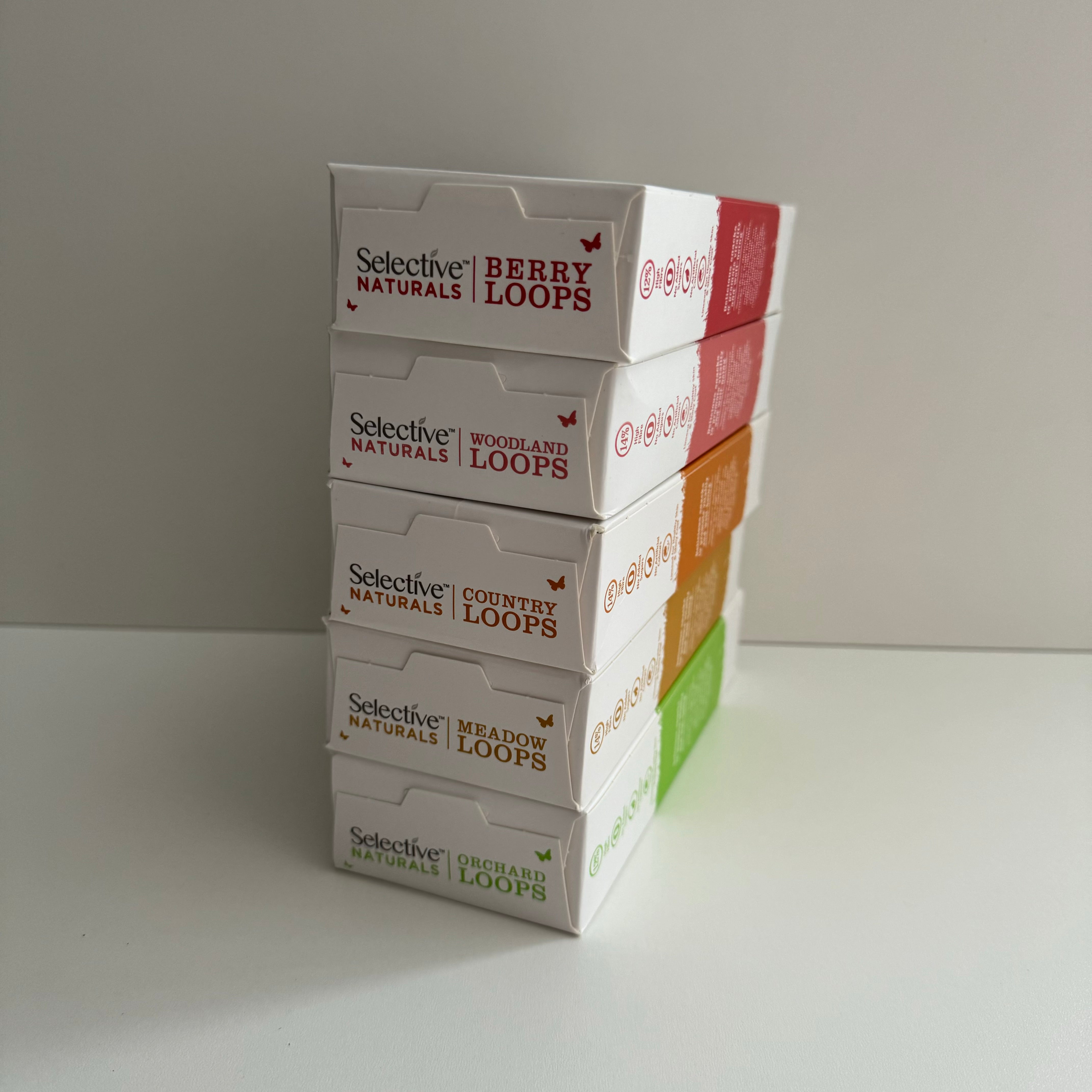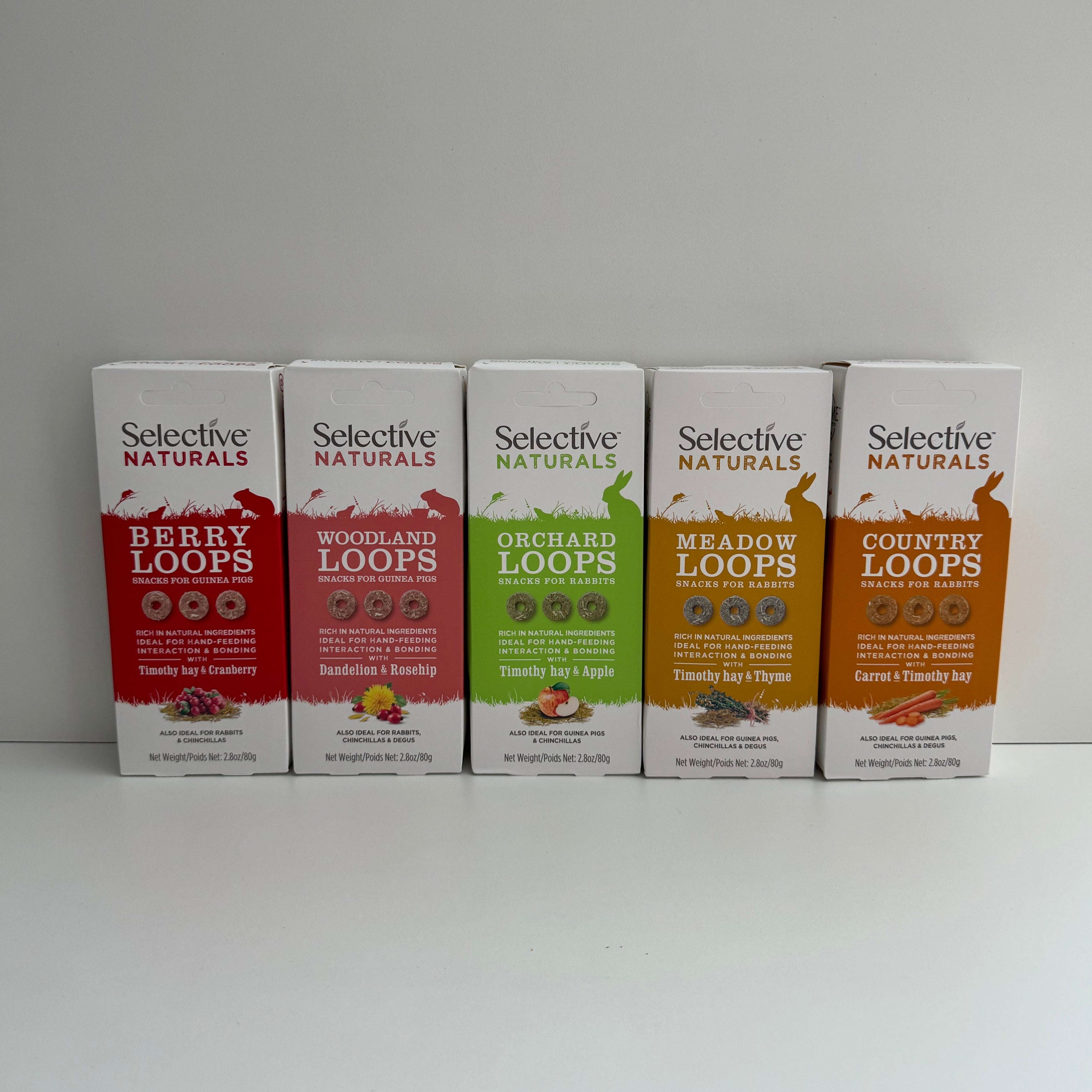 Treat your rabbit or small animal to our Selective Naturals Loops Bundle - a delicious assortment of all 5 natural and tasty flavours. These treats are perfect for rabbits and other small animals, providing them with a healthy and enjoyable snack.