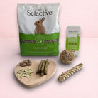 Welcome your new bunny home with our Welcome Home Bunny Bundle! This bundle includes 1.5kg of optional Burgess or Supreme Junior pellets, plus optional Burgess Excel or Supreme Naturals Treats, 50 grams of Fibre Sticks, Pea Flakes, and Barley Rings, as well as a randomly selected Toy Ball and Chew Toy. Save money by purchasing this bundle instead of buying these items separately. Your bunny will love their new bundle!