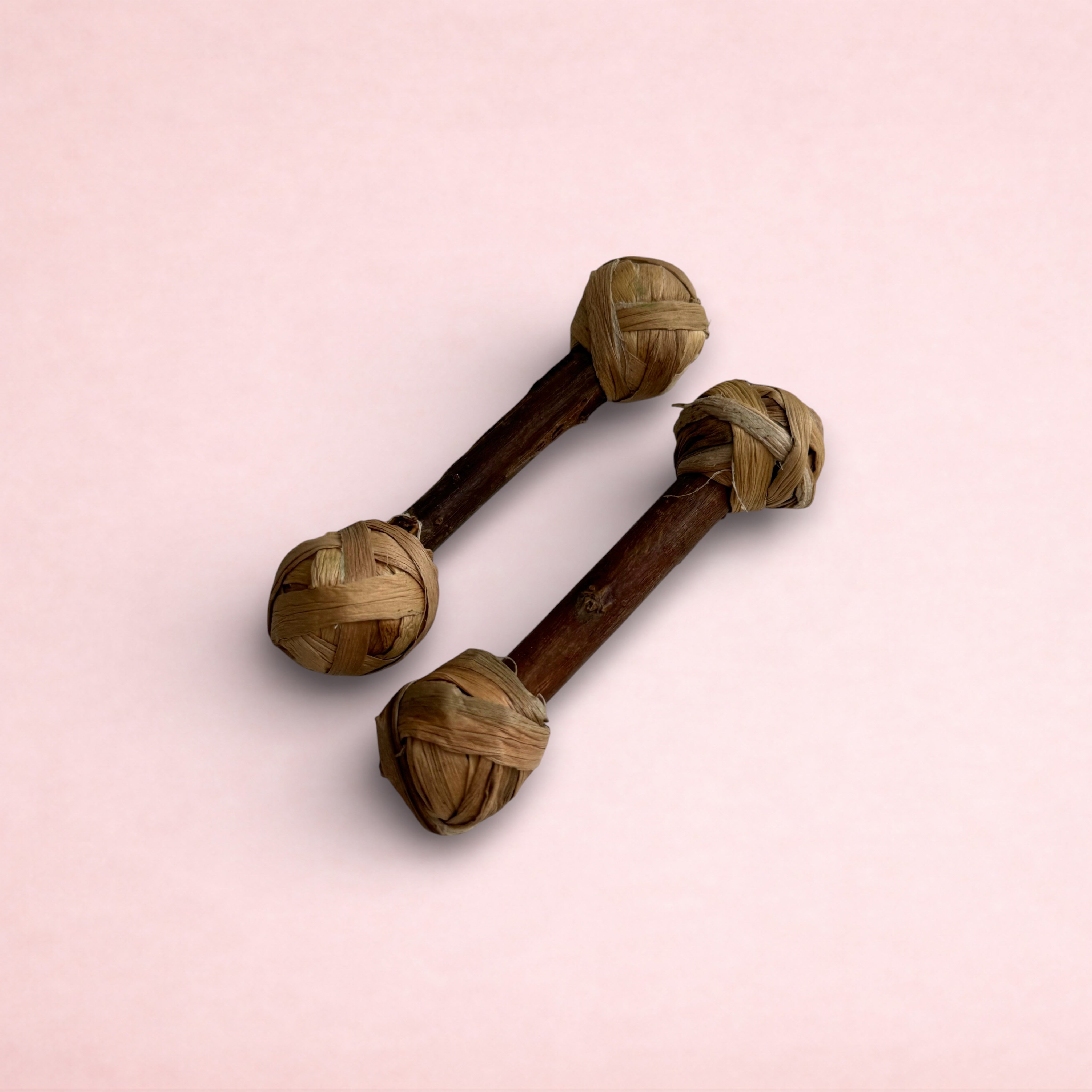 Enhance your small animal's playtime with these Duo of Dumbbells by Trixie. Made from natural bark wood and grass, these toys are perfect for rabbits and small animals to chew and throw, promoting healthy physical and mental stimulation.