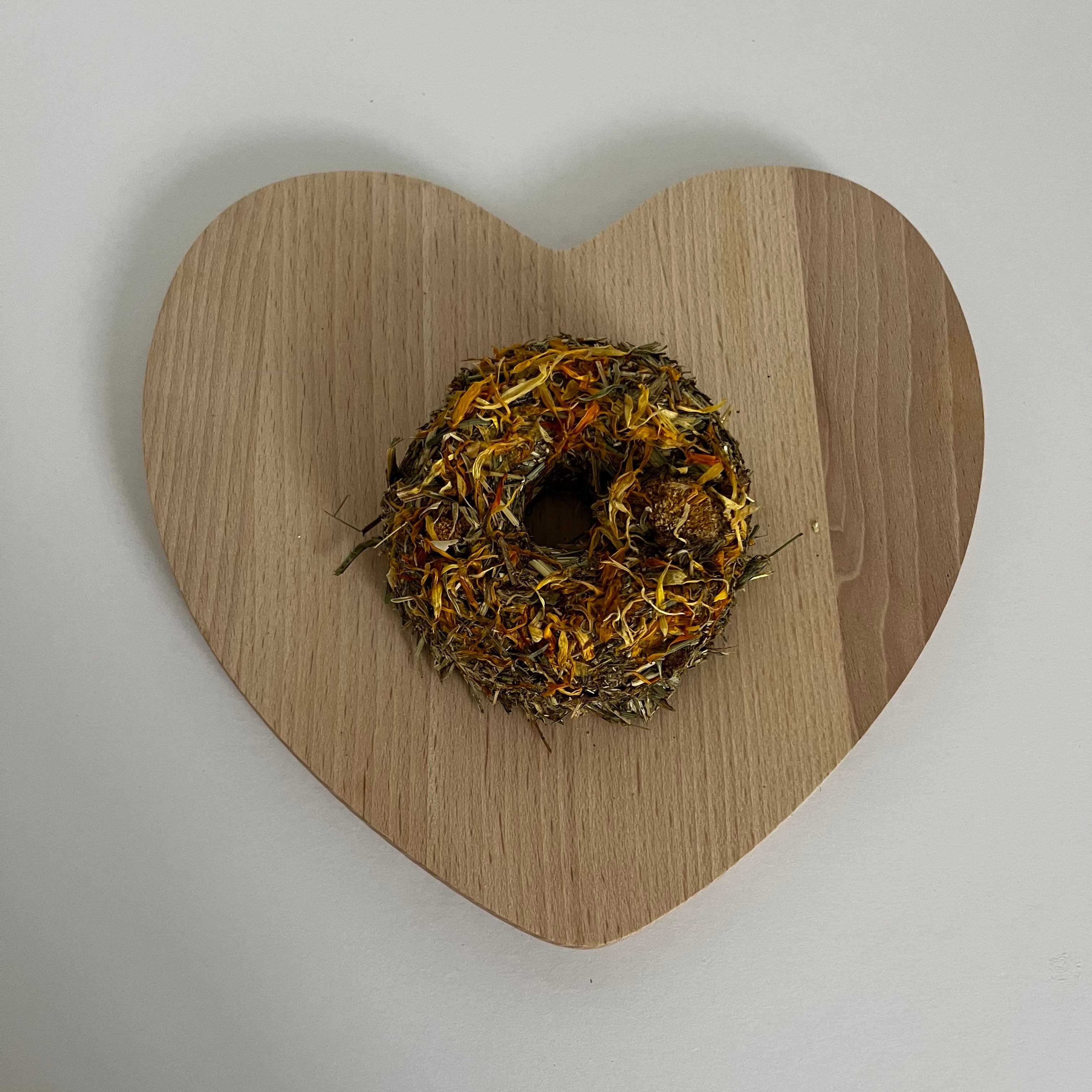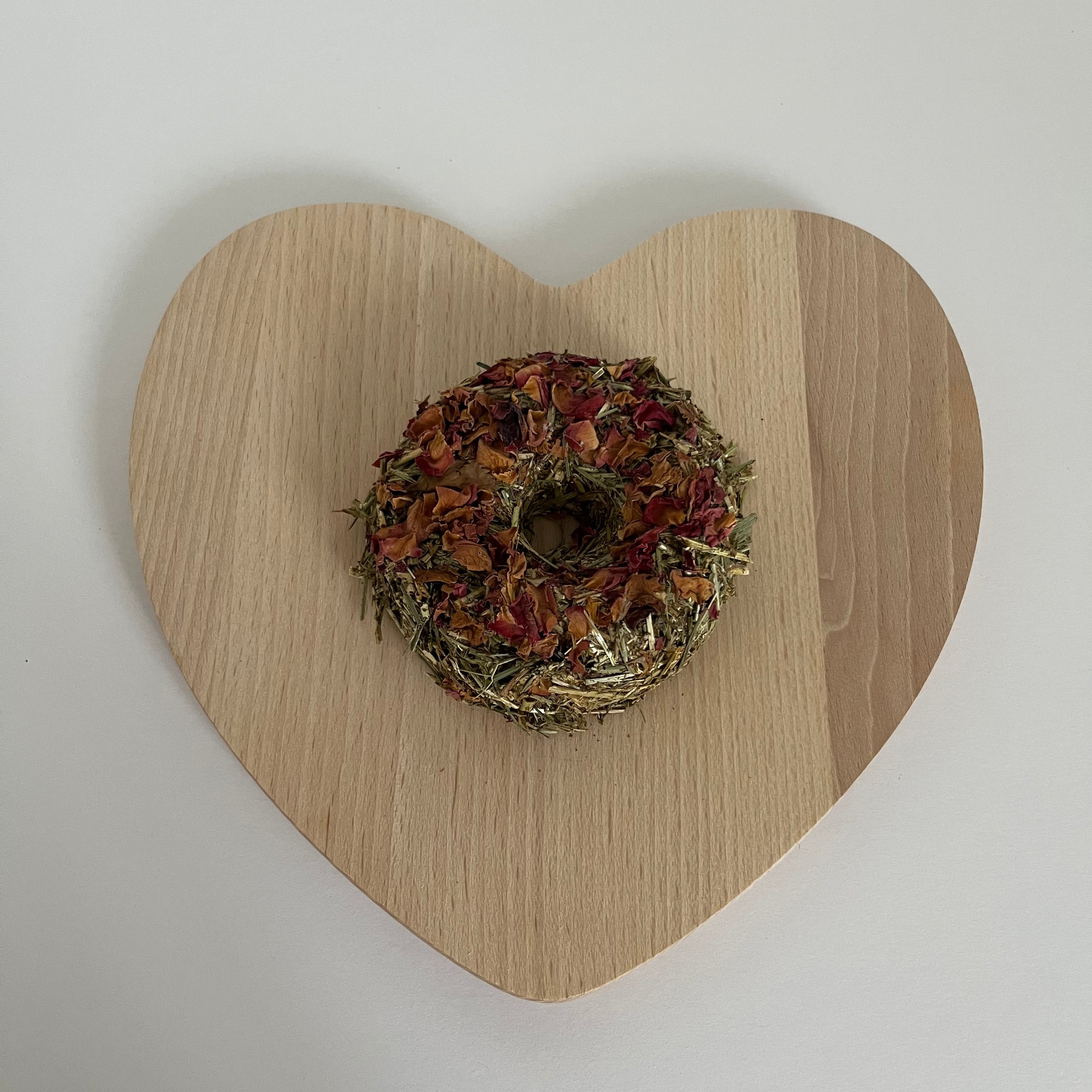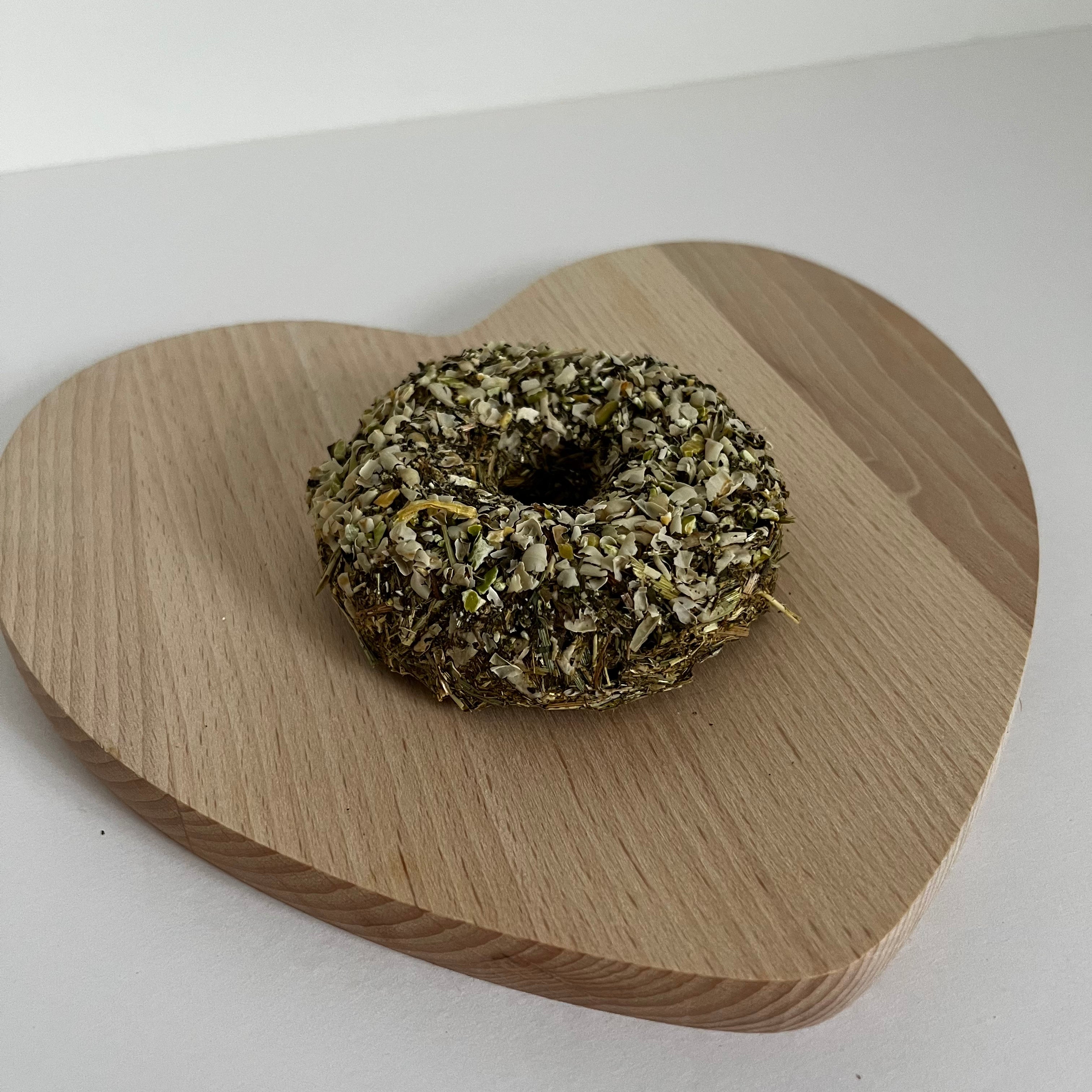 Our Forage Doughnuts are a delicious and healthy snack for all small animals. Packed with 100% natural ingredients, these doughnut treats are made with a unique blend of Dried Grass, Dandelion and Nettle with your choice of 3 different toppings - Rose Petals, Chamomile and Marigold and lastly, Mint with crushed Pea Flakes.
