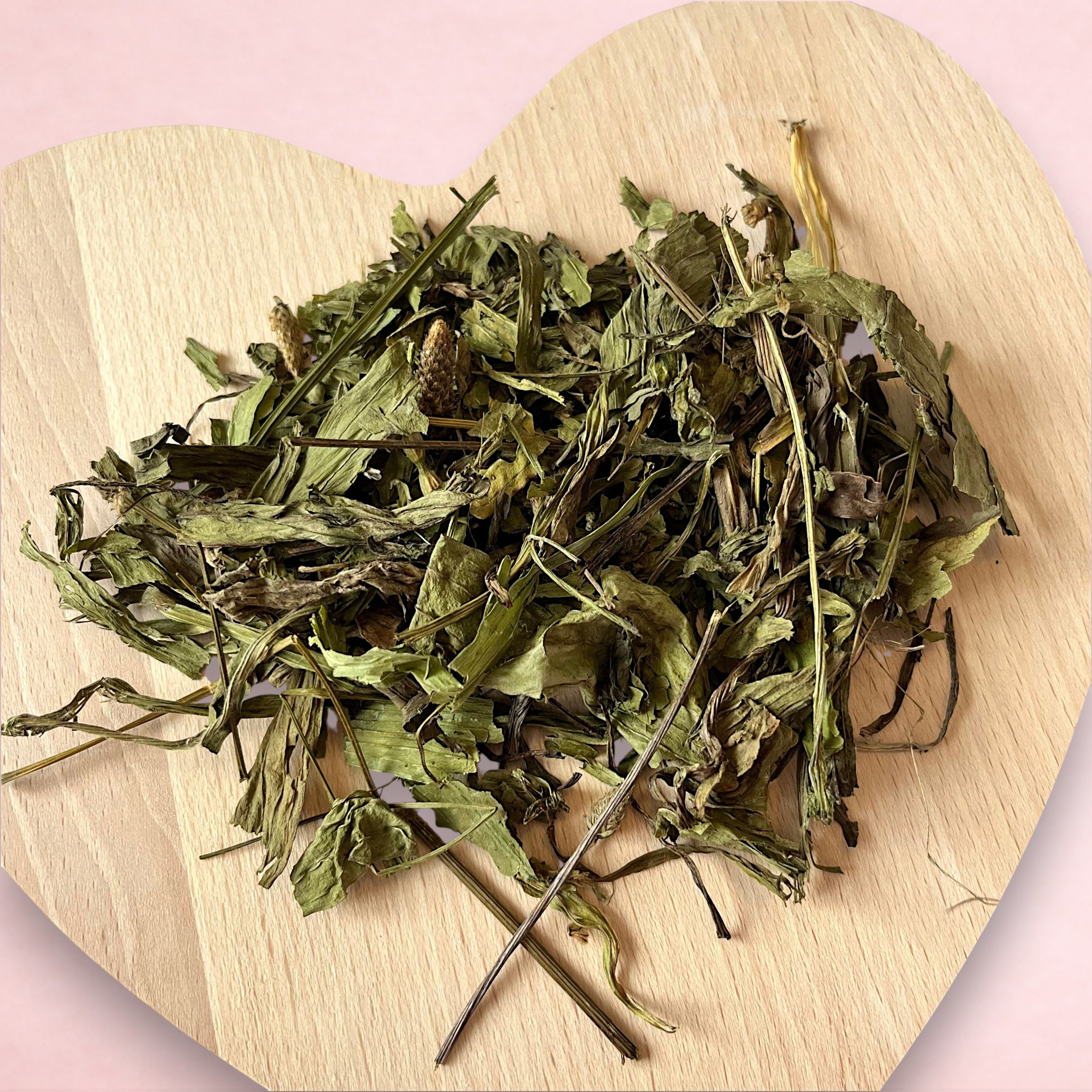 Our "Plantain Forage" - the perfect addition to your pets diet! Rich in fibre, this forage is ideal for animals who don't consume enough hay. Simply mix it into their daily hay intake to encourage more hay consumption and ensure they get the right amount of fibre in their diet.