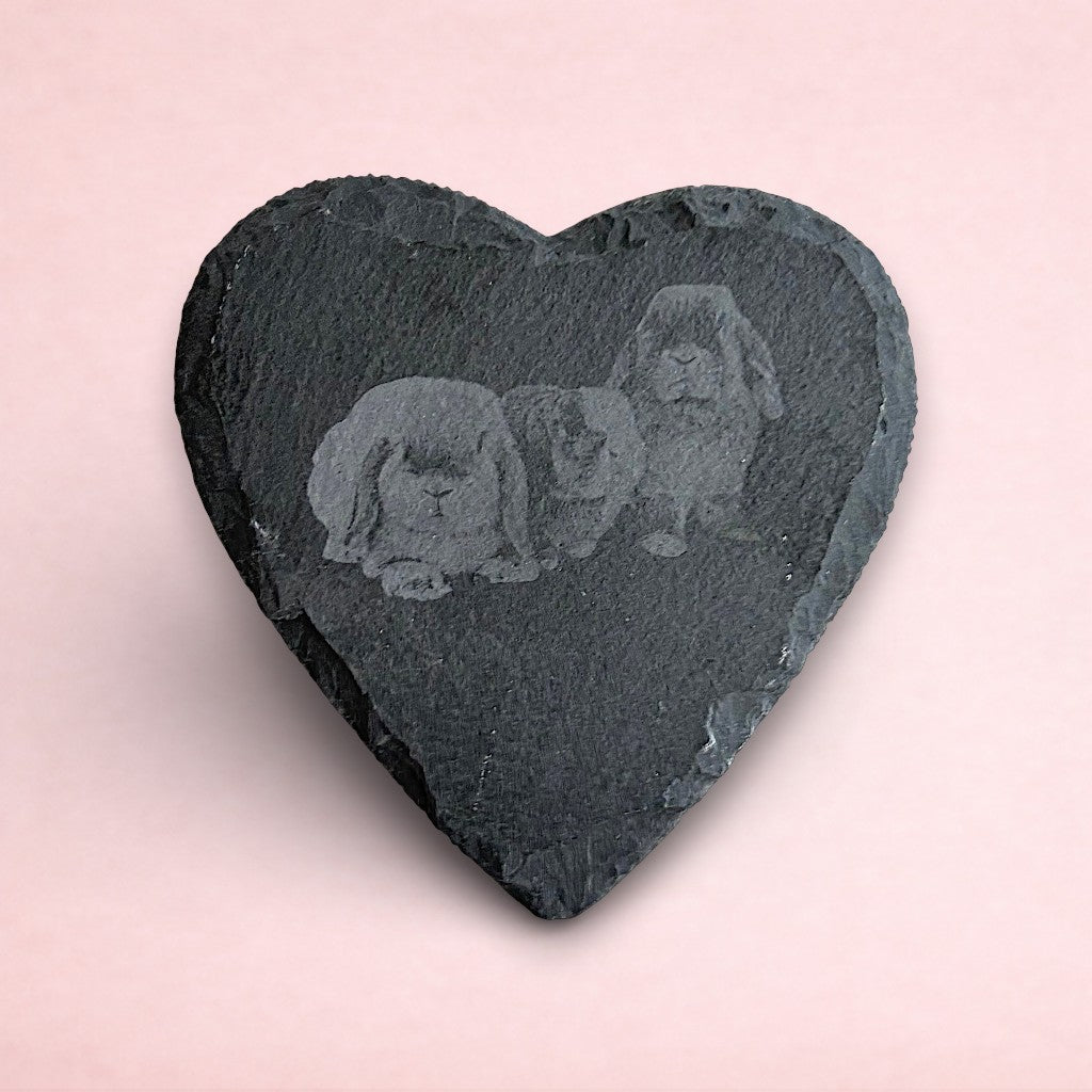Treat your loved one (or yourself!) this Valentine's day with a personalised heart slate coaster, perfect for rabbit lovers and Christmas enthusiasts alike! Upload your chosen photo of up to 2 bunnies, with their names and optional heart symbols as seen in the product photo.