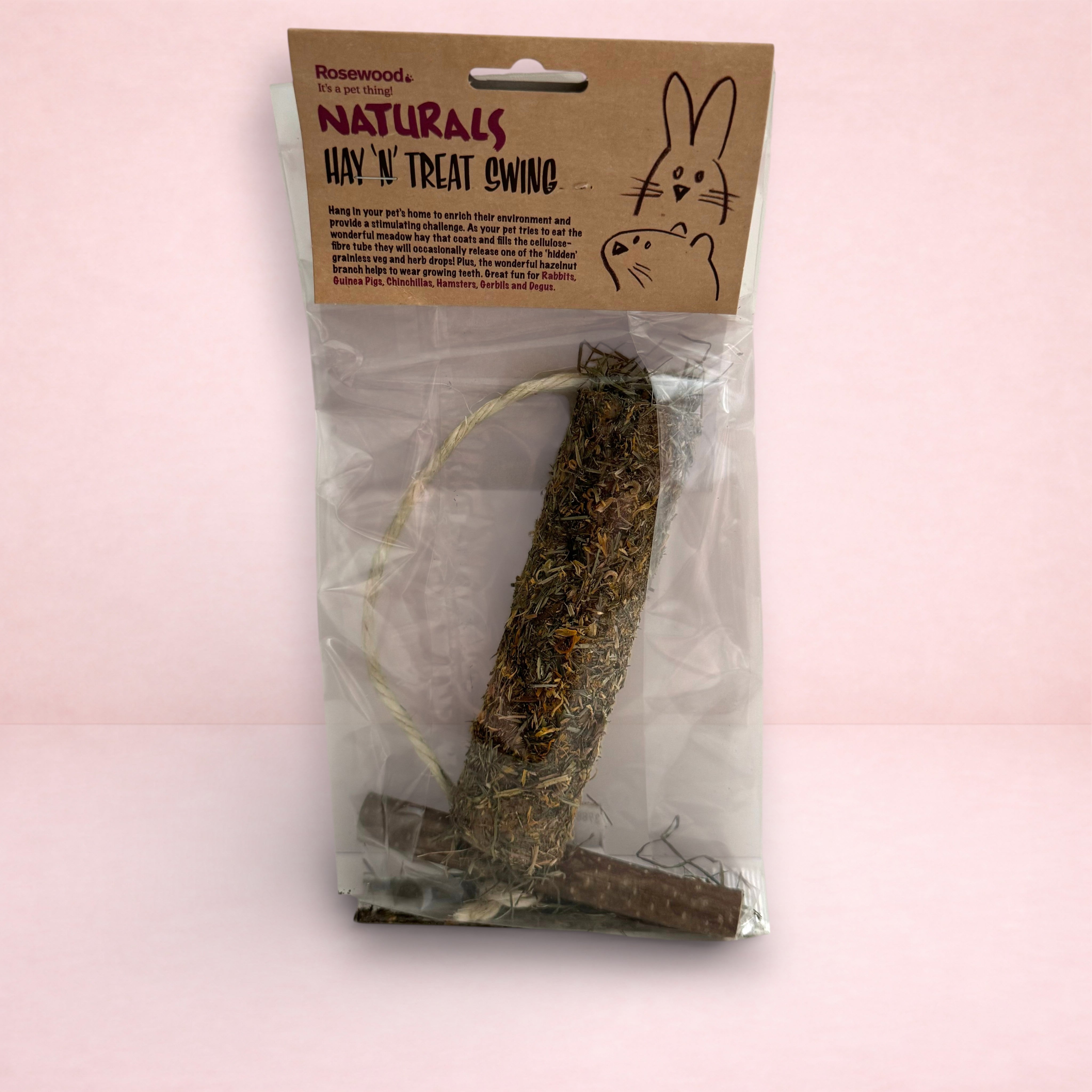 Hang this Rosewood Hay 'n' Treat Swing in your rabbits' home to enrich their environment and provide stimulation.