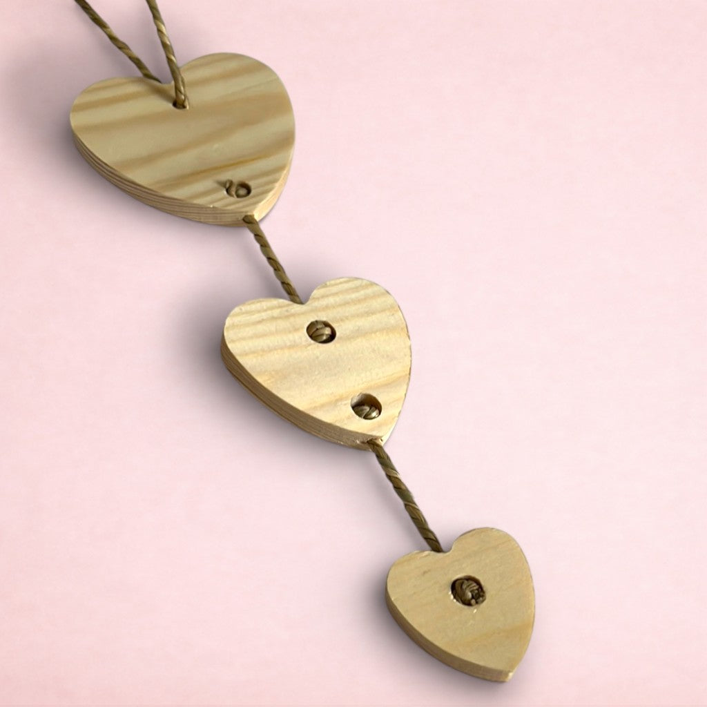 Our heart hanging toy is the perfect addition to your pets playtime activities! This toy is made up of three wooden hearts that are attached together on seagrass twine, providing a fun and interactive experience for your furry friend.