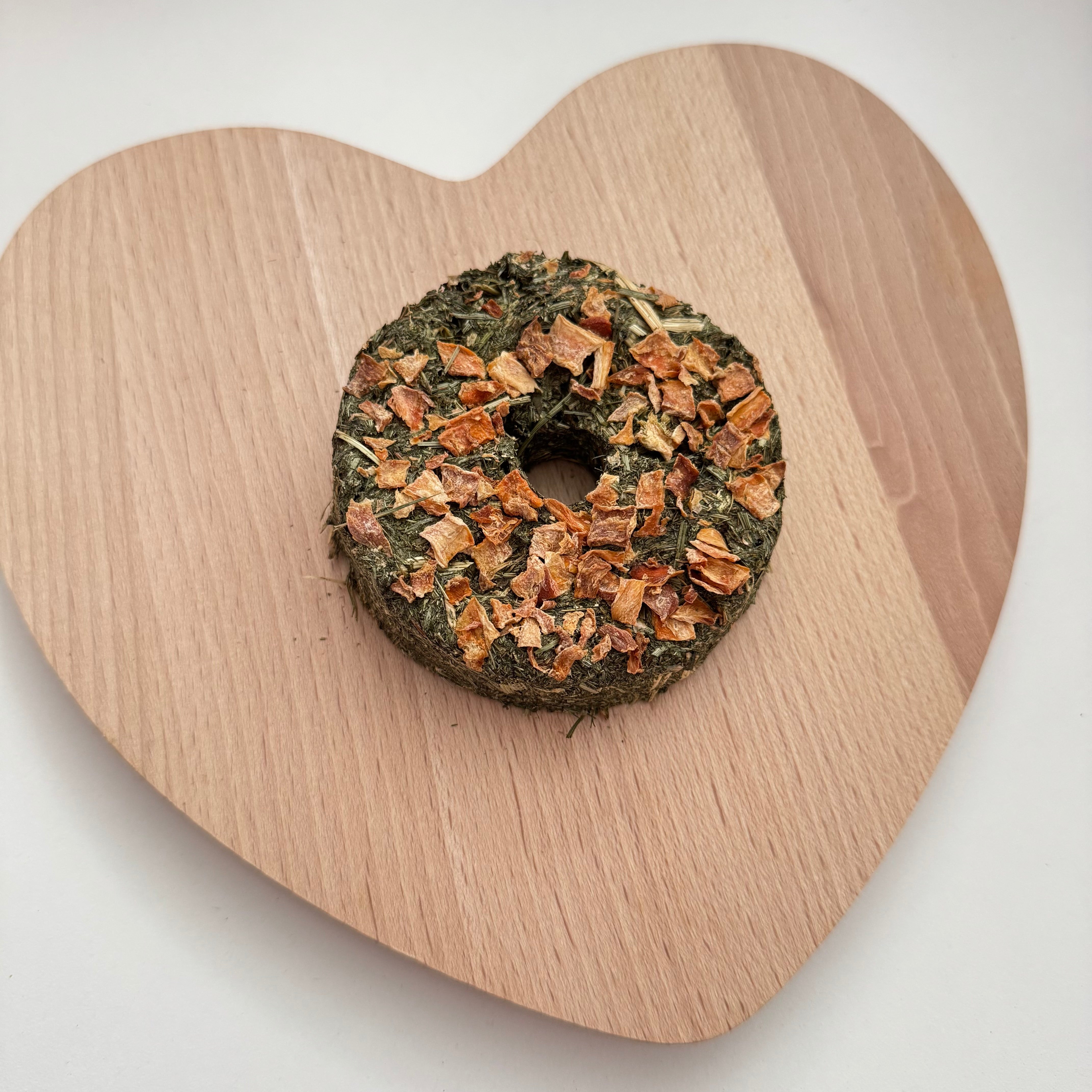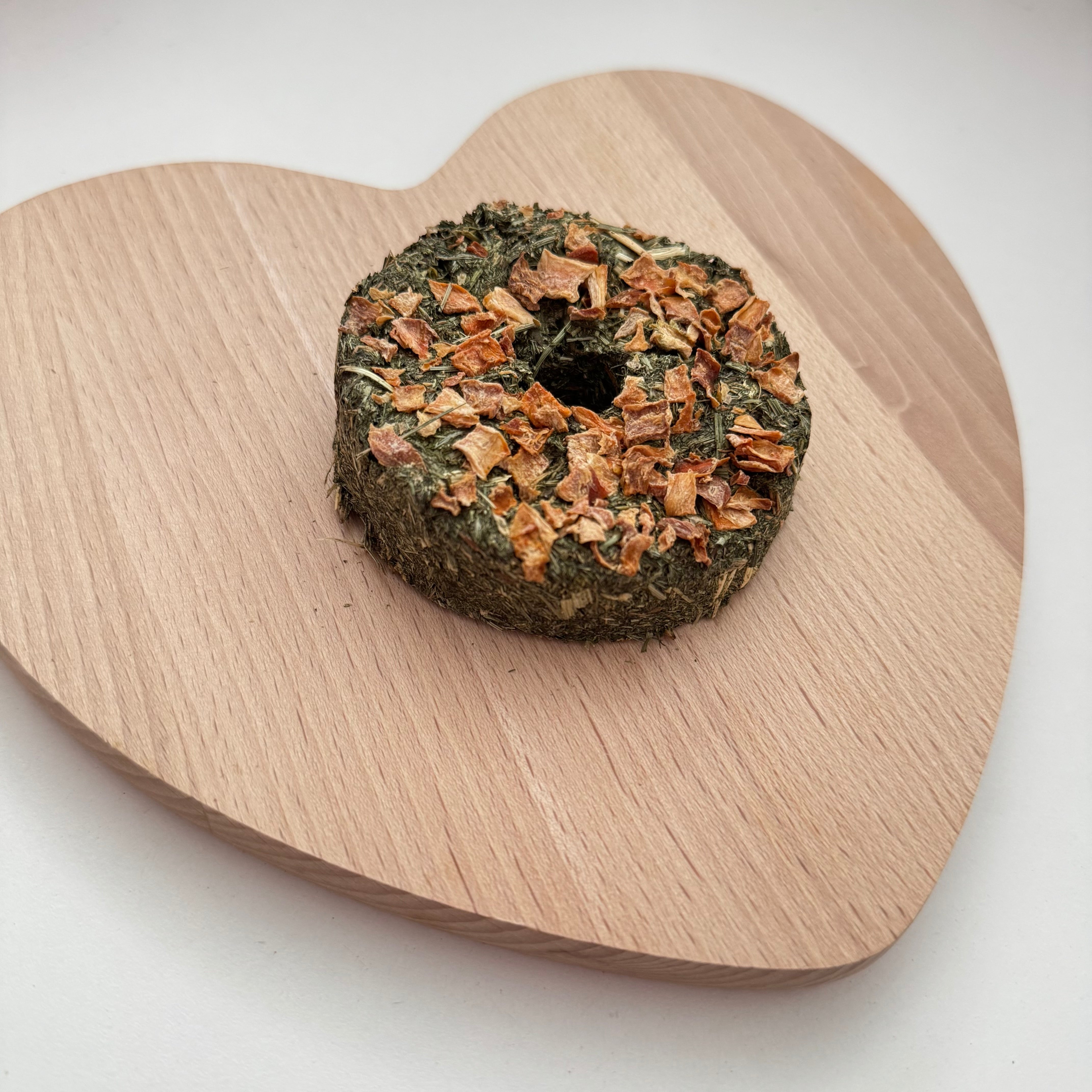 Treat your bunny to a crunchy snack they’ll love! These 100% natural doughnuts are made from UK-grown timothy hay, enriched with tasty herbs and topped with carrot pieces.