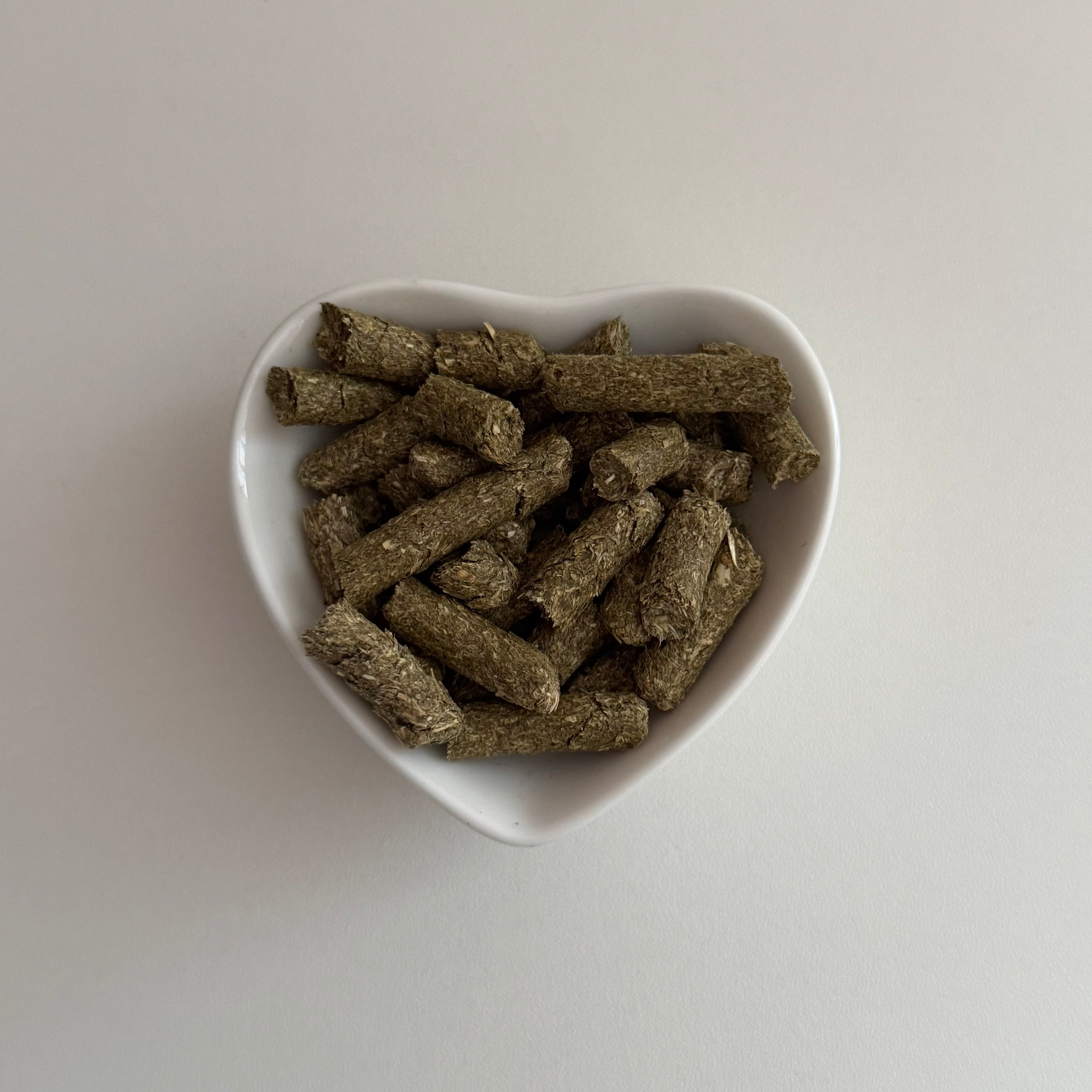 Dill Hay Pellets are a tasty and nutritious snack for rabbits and guinea pigs. Made from 100% Timothy Hay and infused with Dill Stalks, these treats offer a delicious reward for your pet. They can also be easily broken into smaller pieces.