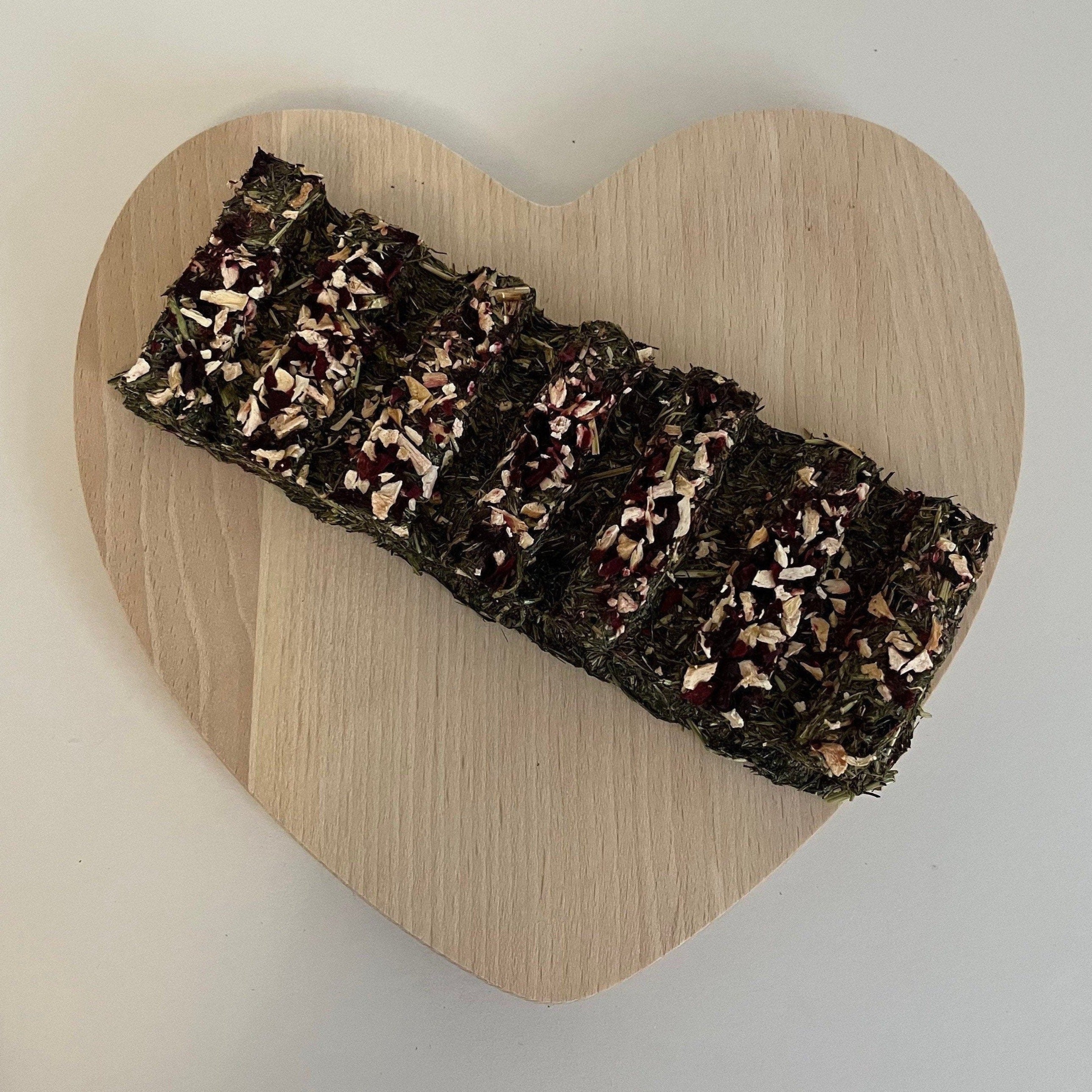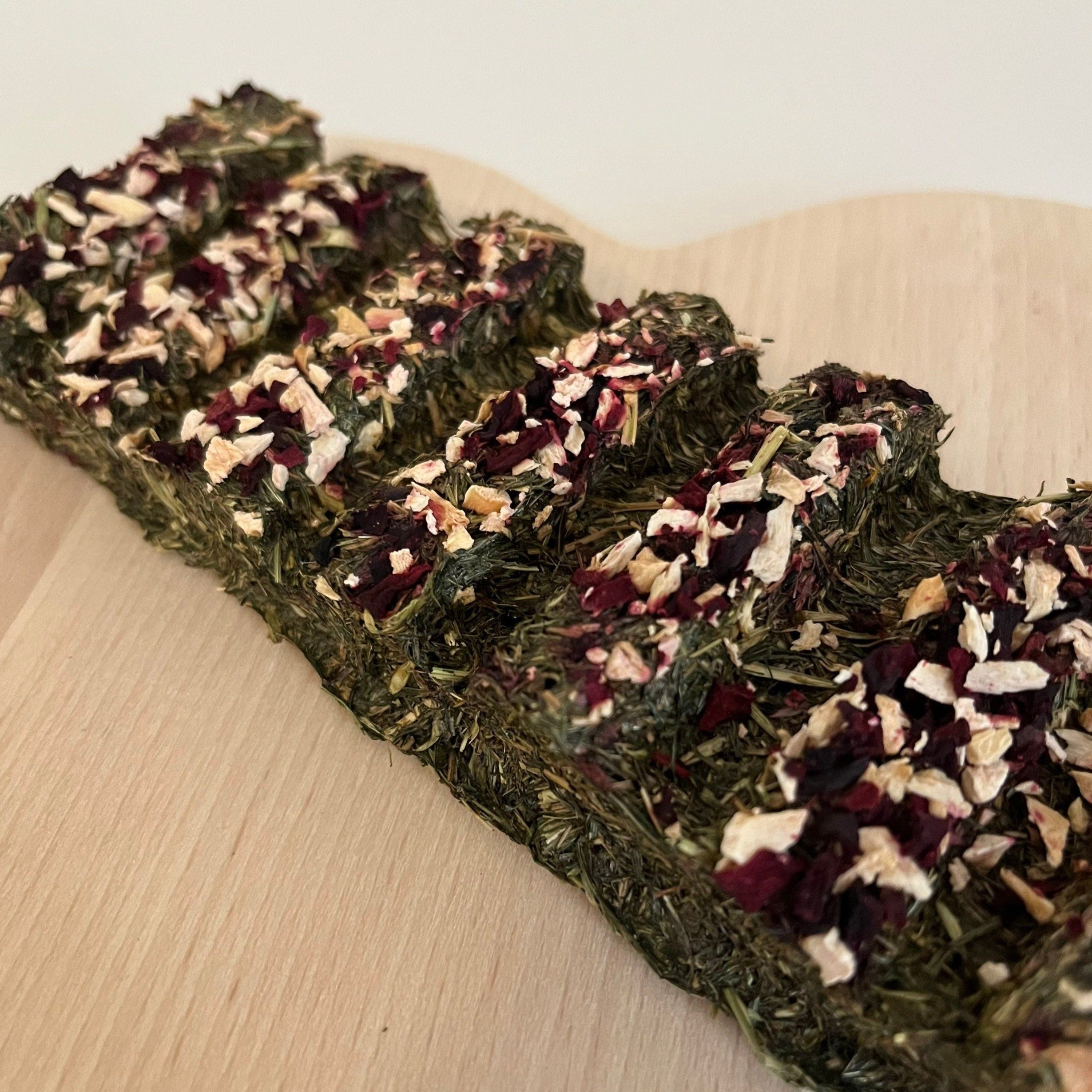 Calling all animal lovers! We have the perfect healthy snack for your furry friend: our Vegetable Patch Bars! Made from an all-natural blend of dried grass, chamomile, marigold, mint, parsley, dandelion, nettle, alfalfa, beetroot, parsnip, and an edible vegan binder, these bars are packed with wholesome goodness.