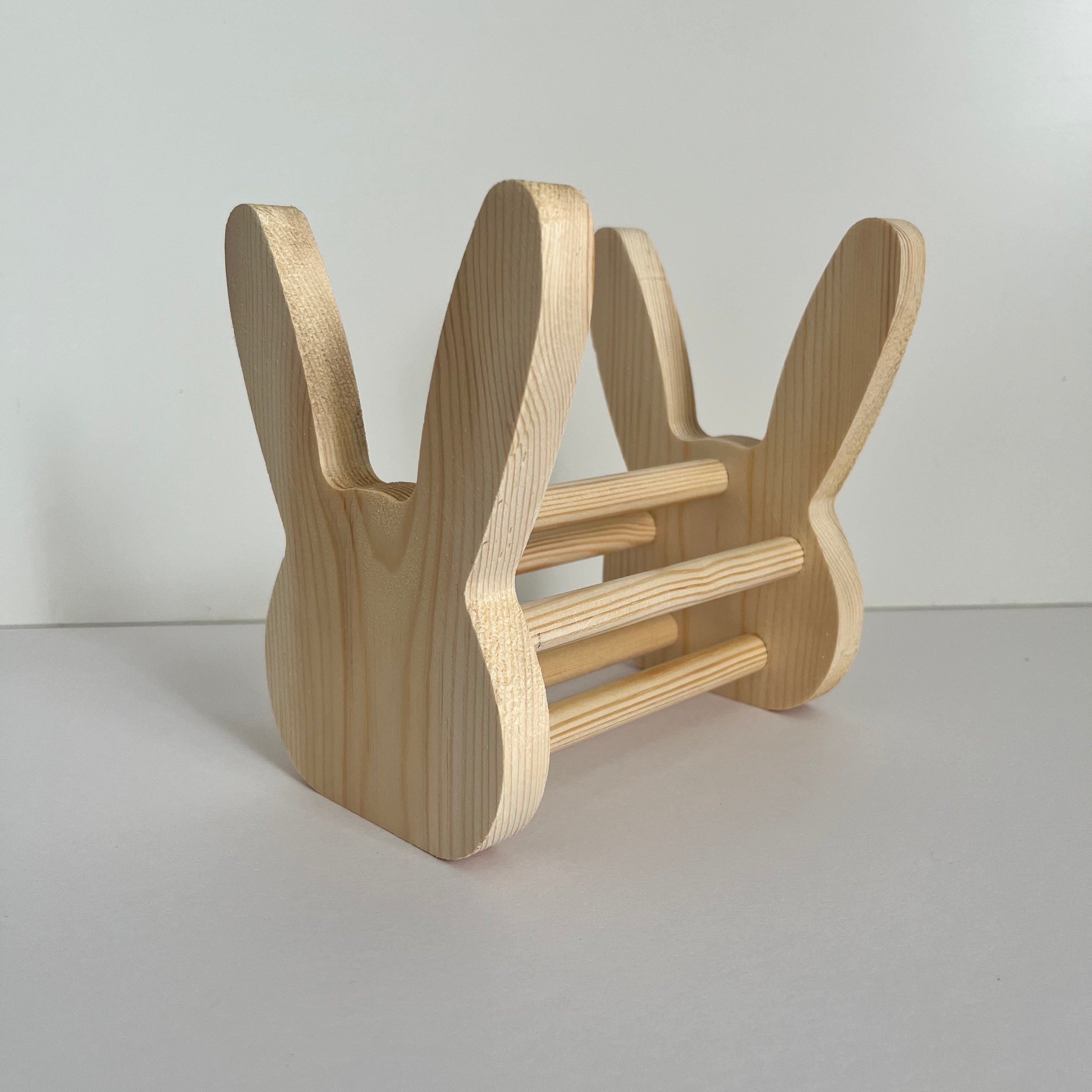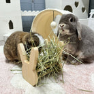 This Hay Stand is bunny-shaped and made from safe, untreated pinewood. Providing good enrichment for bunnies and other small animals. The hay stand is an ideal way to keep snacks off the ground and provide additional hay. It's the perfect size for their treat hay, so you can be rest assured you're not feeding them too much!