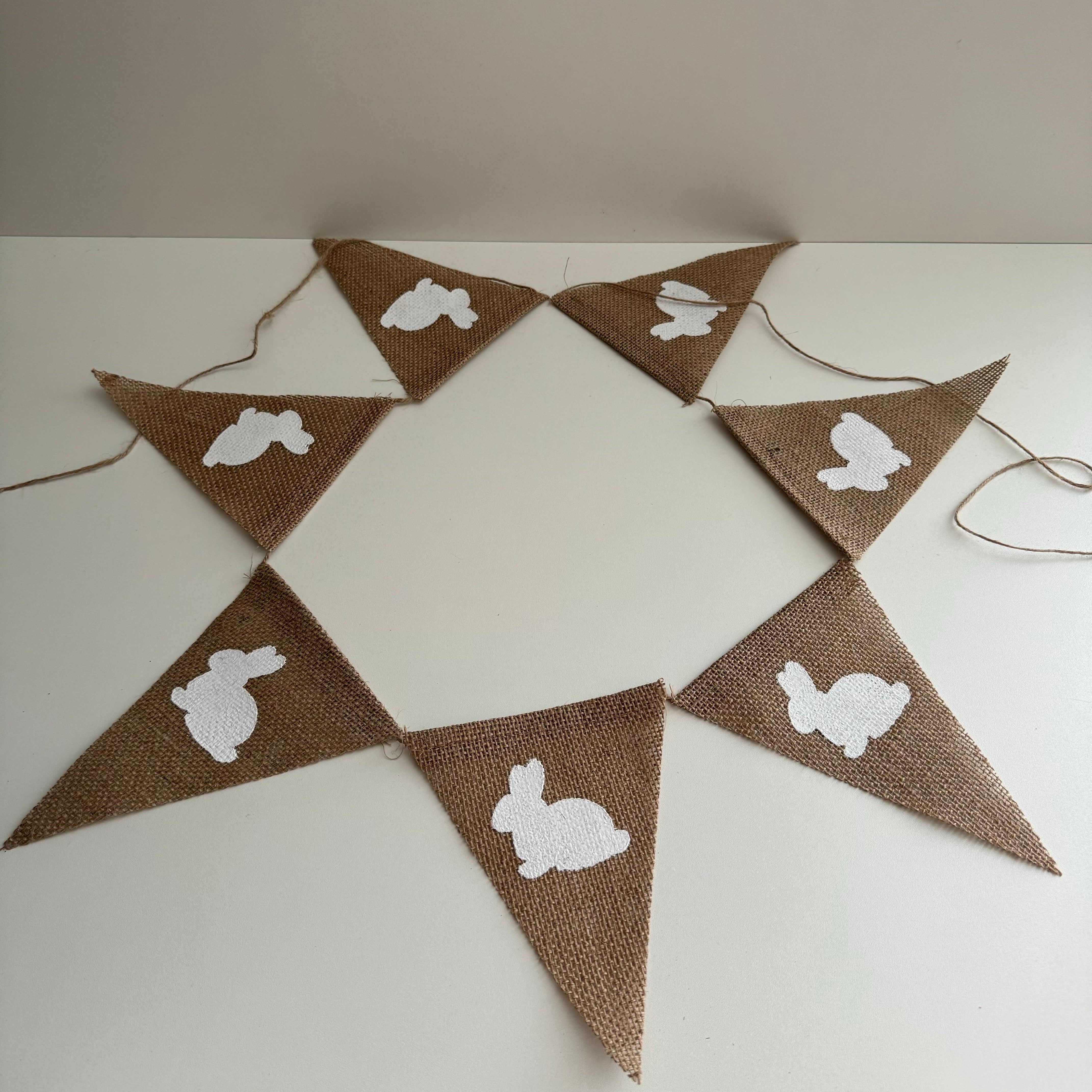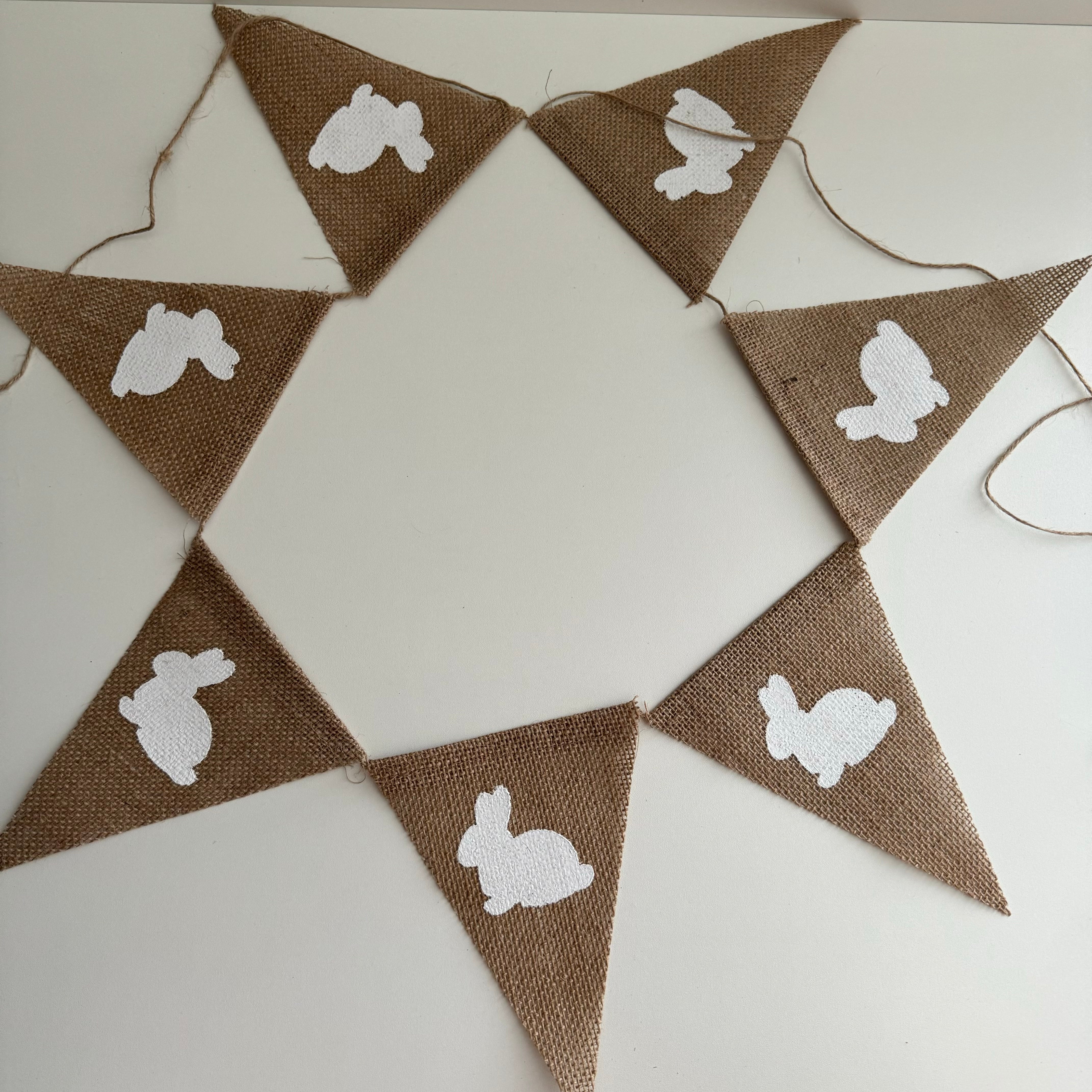 This bunny bunting in a neutral tone is suitable for hanging on your pet's pen or furniture, or even on the wall with the use of command hooks.