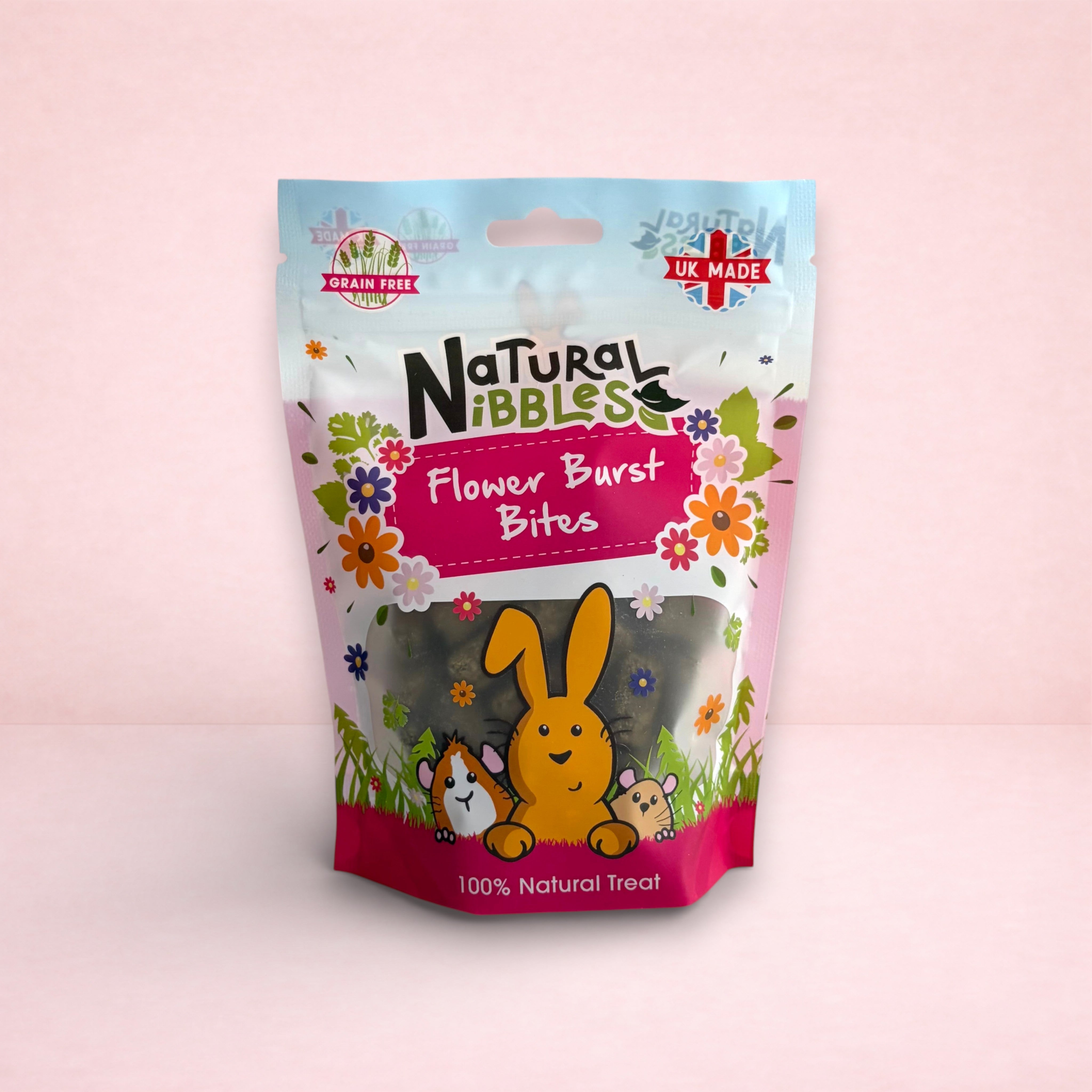 Flower Burst Bites are handcrafted and oven-baked in Norfolk. These timothy hay based treats are a perfect addition to your small pet's diet as they contain no added sugar, artificial ingredients, or colours. These crunchy nibble snacks are bursting with tasty flowers and herbs, making them a wholesome and delicious treat for your rabbit or small pet.