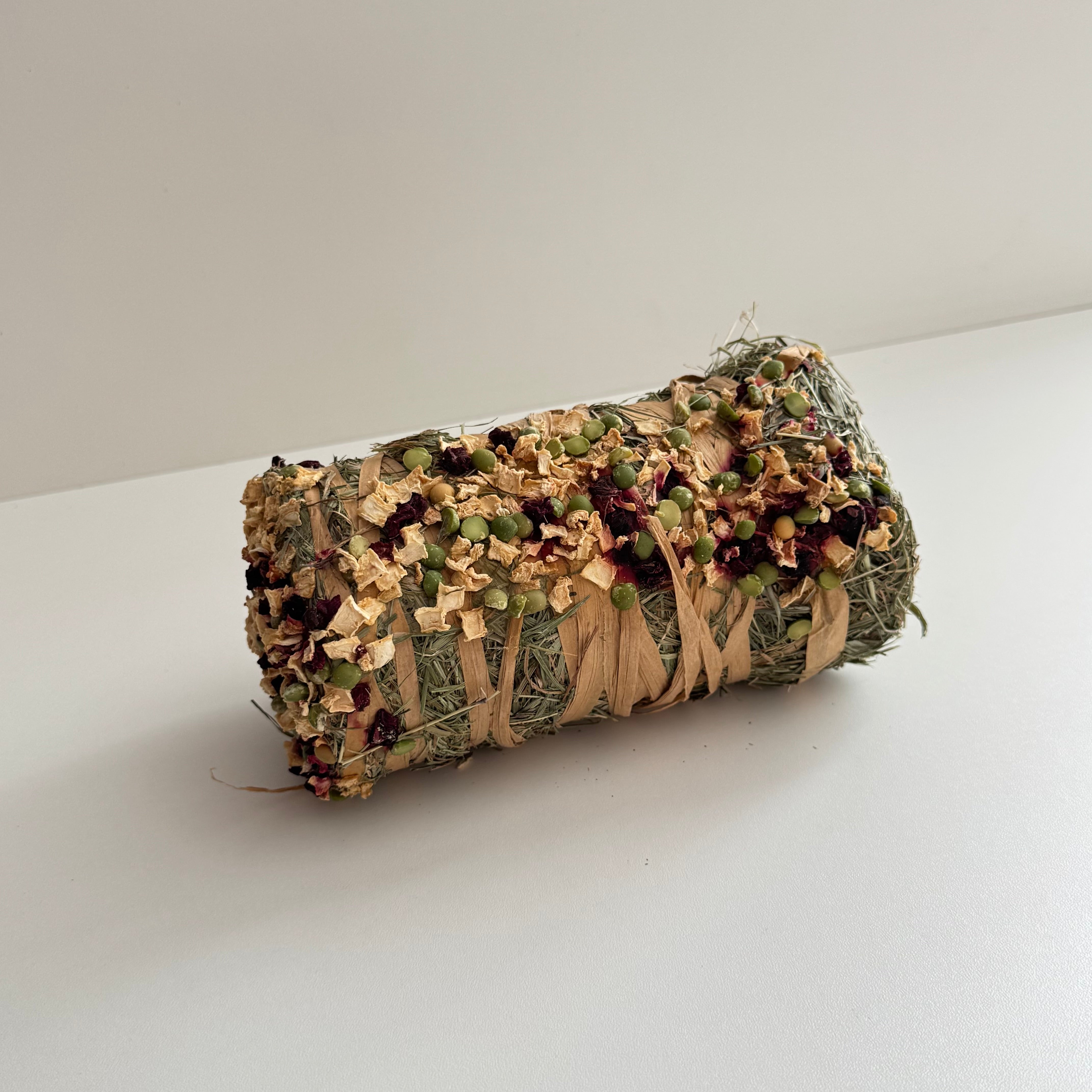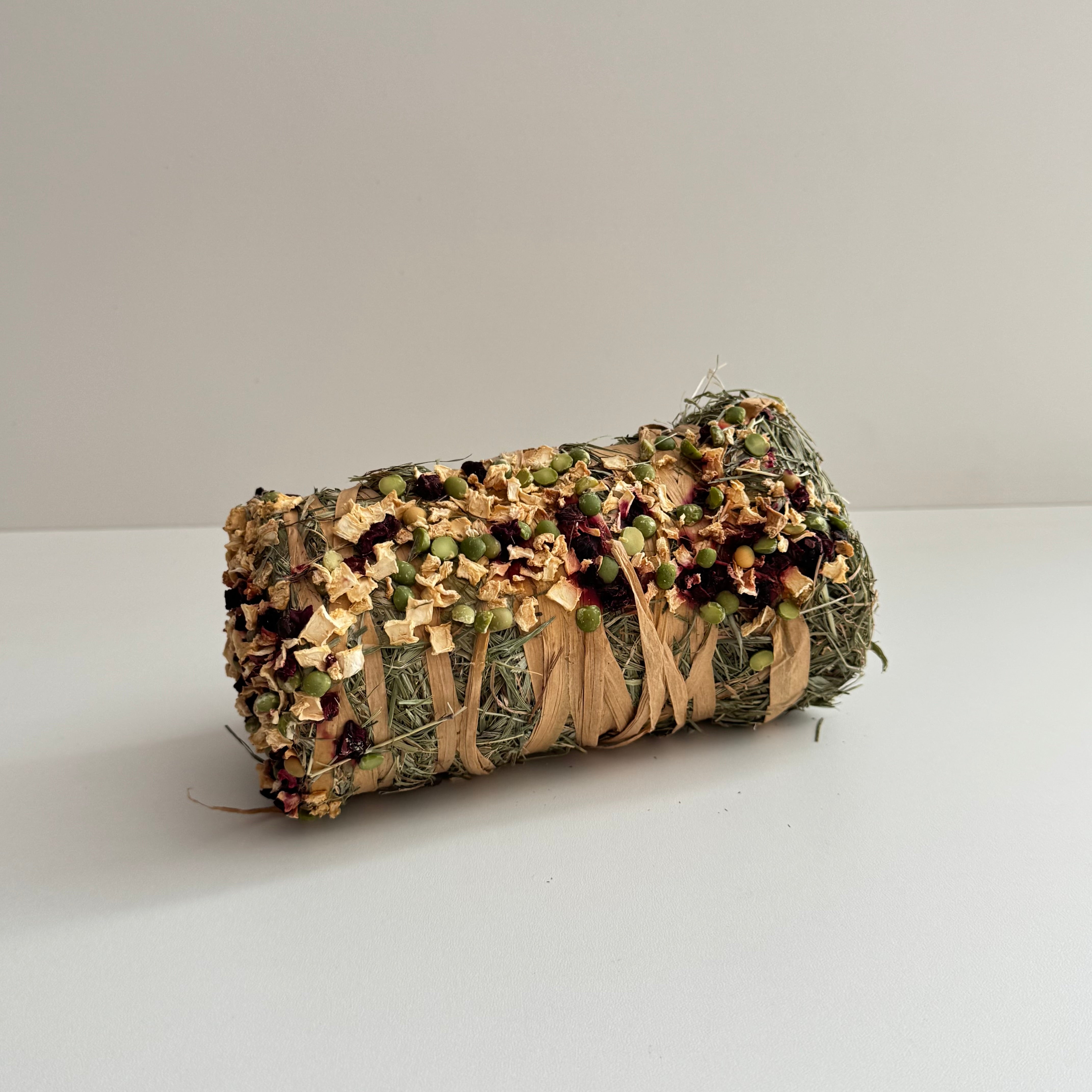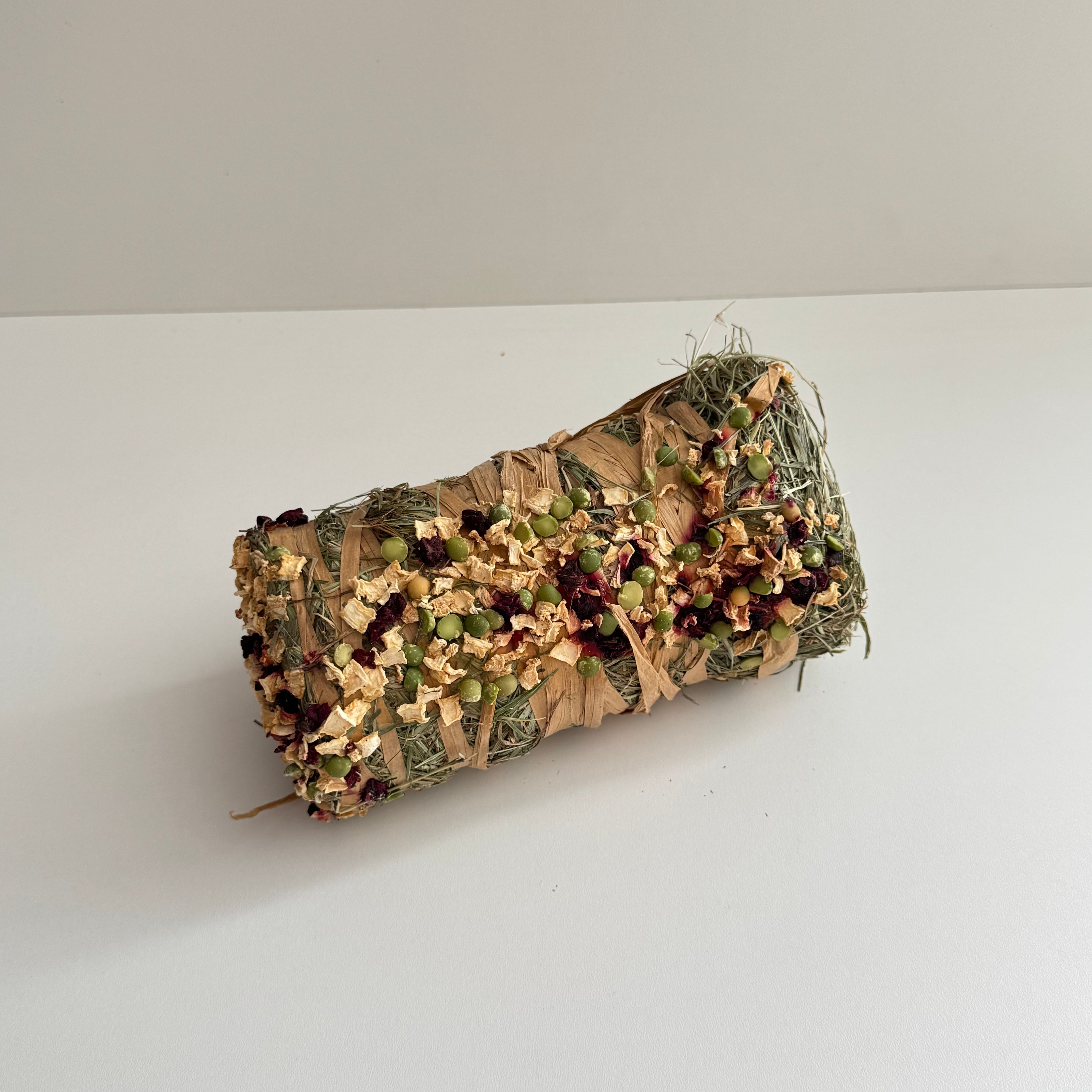 This hay bale is a tasty, nutritious treat for rabbits and all other small pets! Each bale is a blend of high-quality hay, then mixed with beetroot and parsnip. It provides essential fibre to support digestive health and natural chewing instincts while keeping them stimulated for hours.
