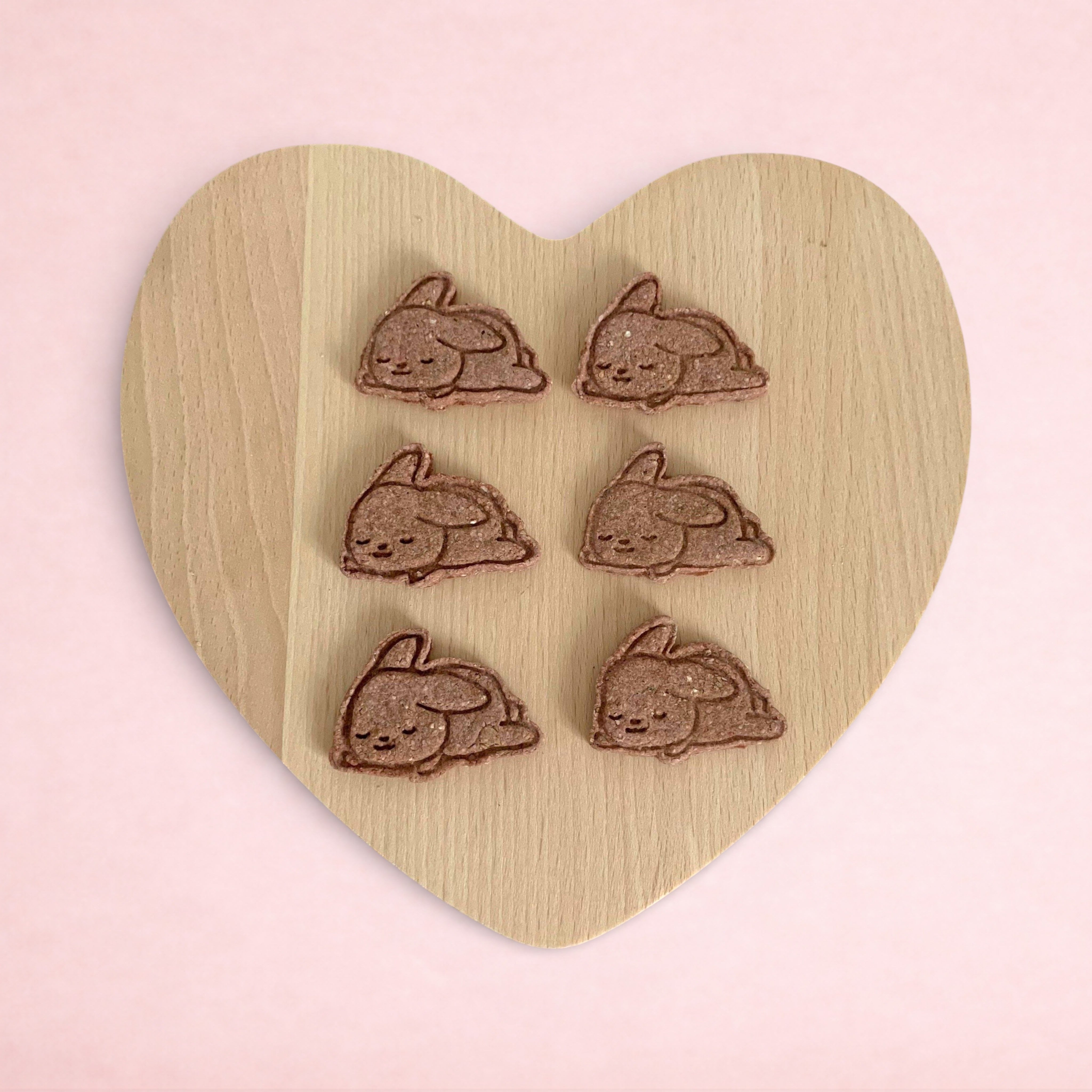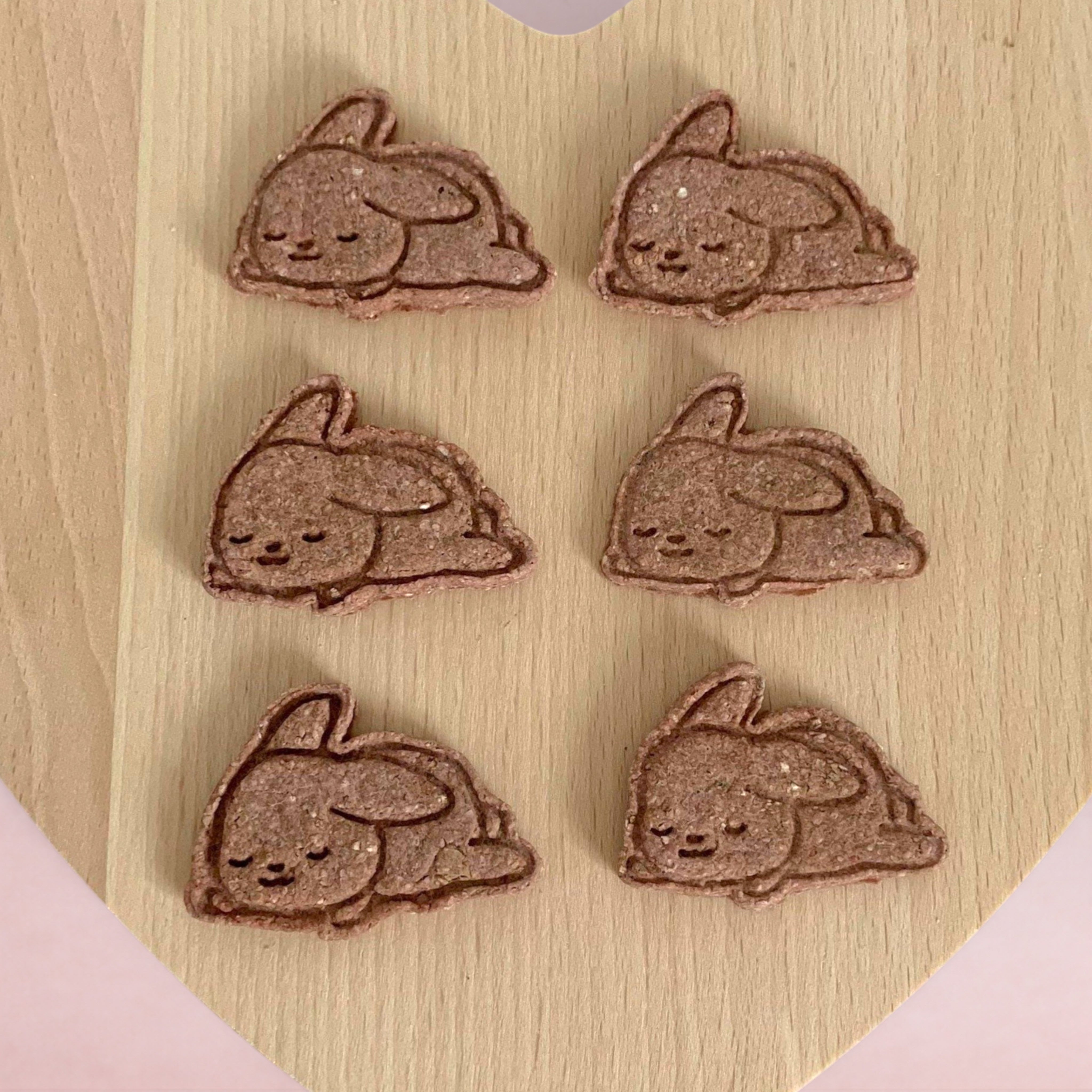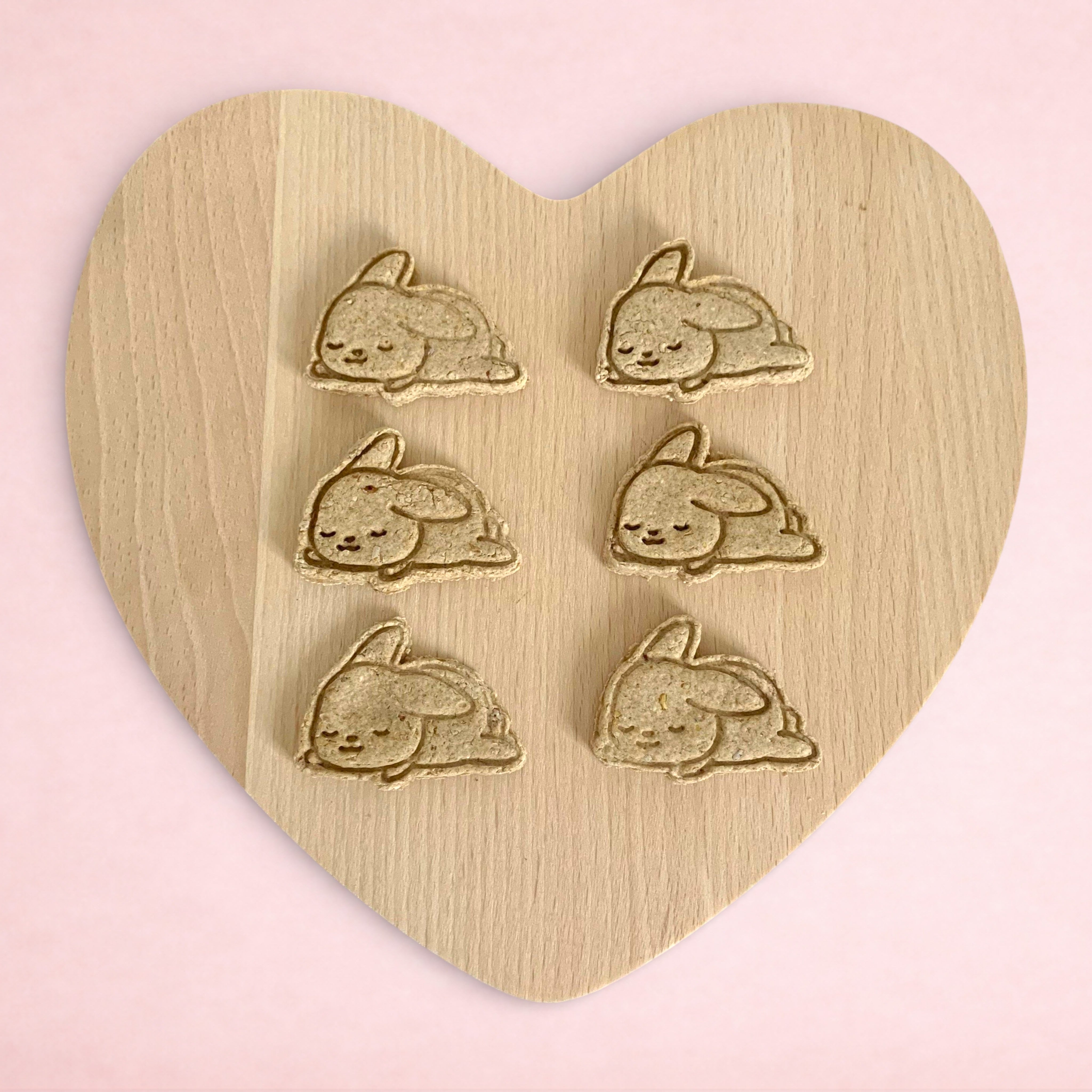 Our "Sleeping bunny" shaped treats are handmade from wholesome oats and are perfect for rabbits and other small animals to enjoy.