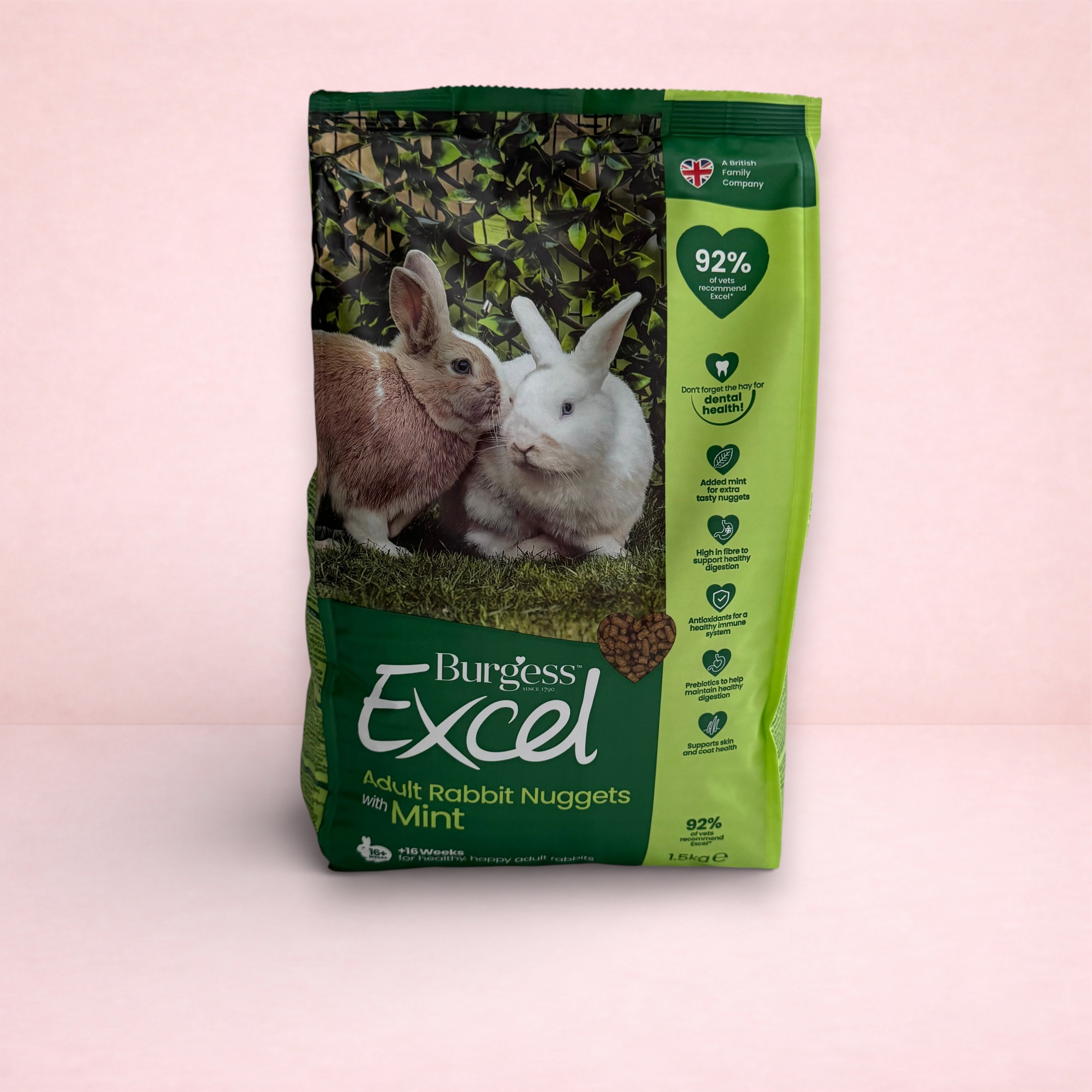 Burgess Excel Rabbit Nuggets with Mint (16 weeks+) is a complementary feed.