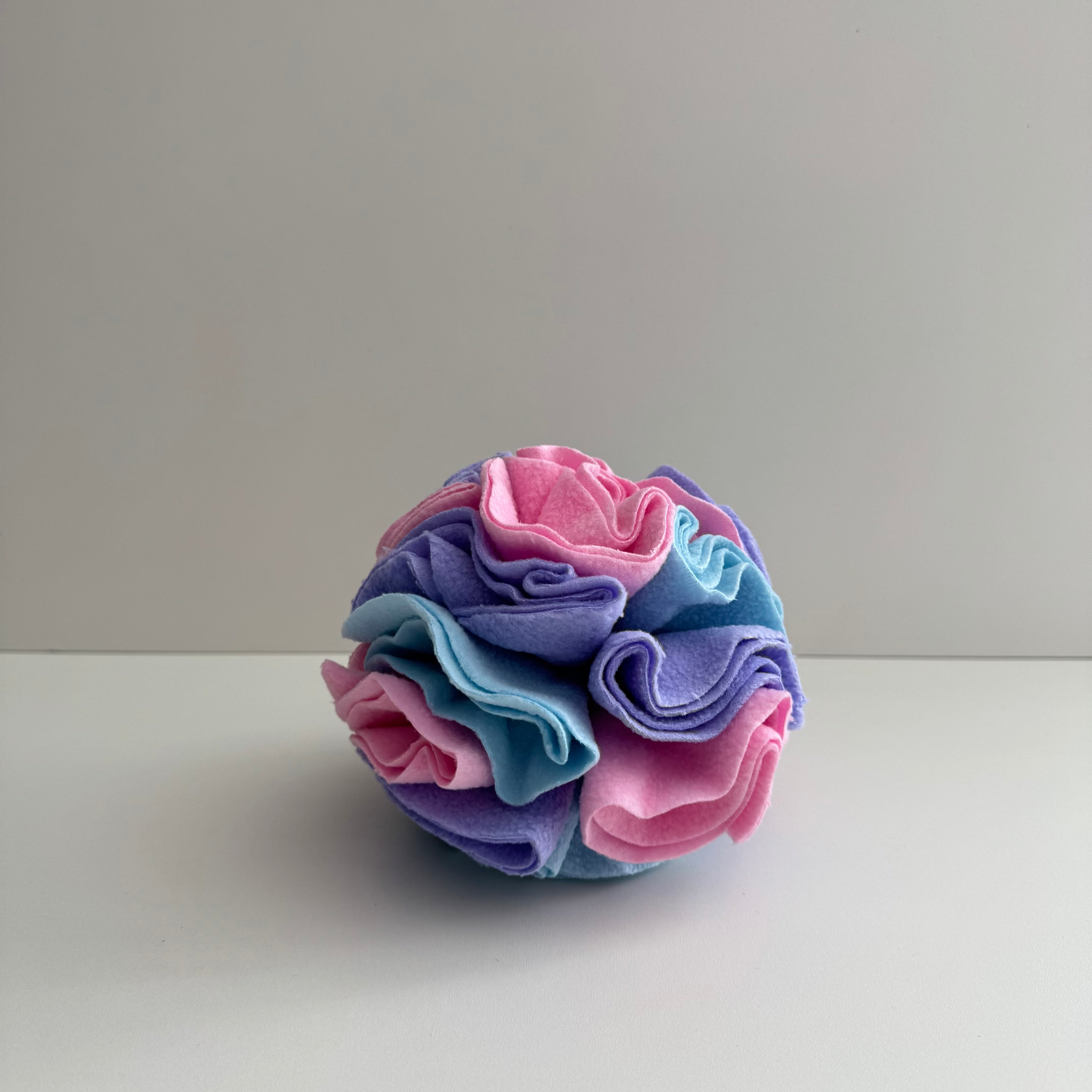 We recommend cleaning the snuffle ball either by hand or on a gentle cycle at 30 degrees. Refrain from using any detergent that can remove the scent of the treats. Air dry only, do not tumble dry.