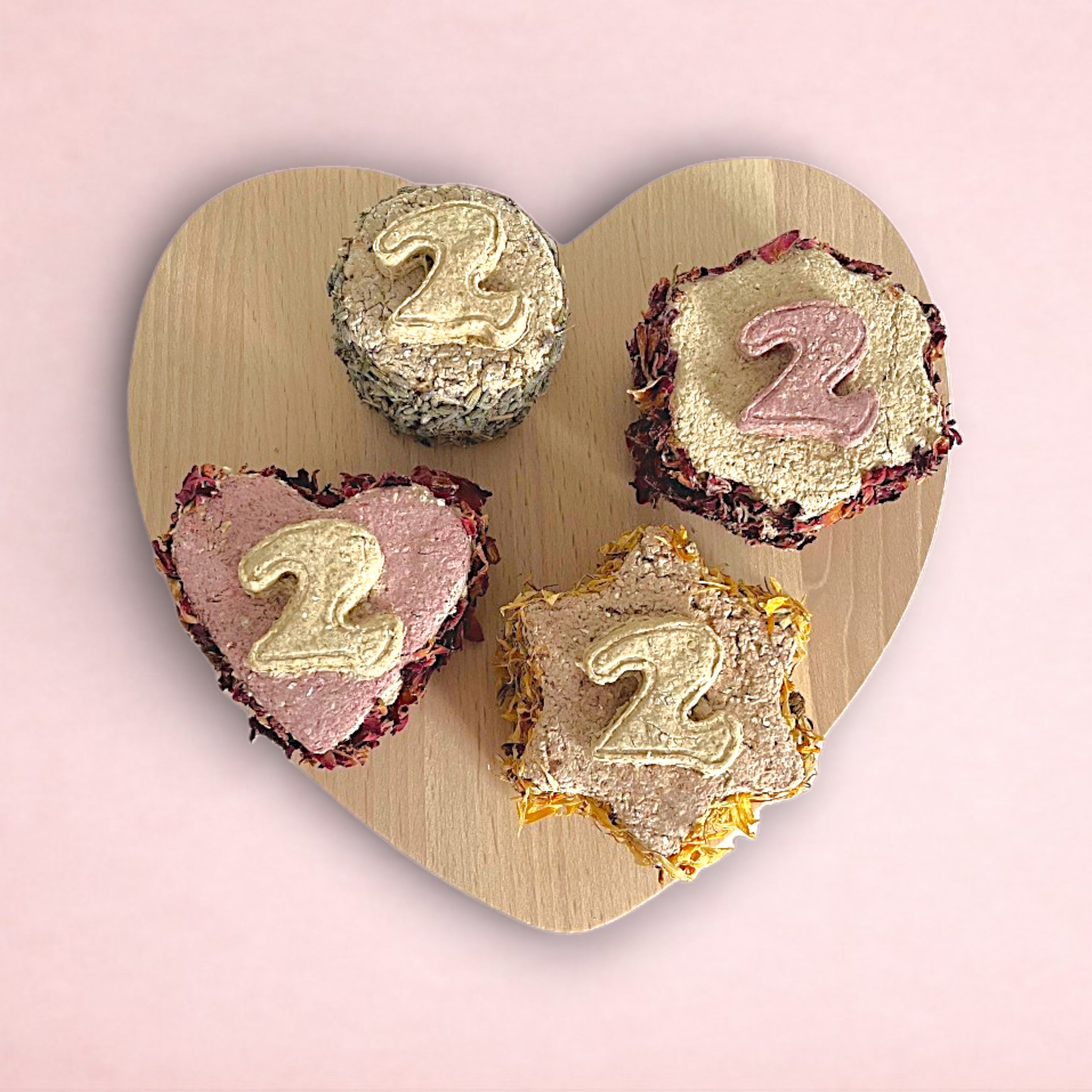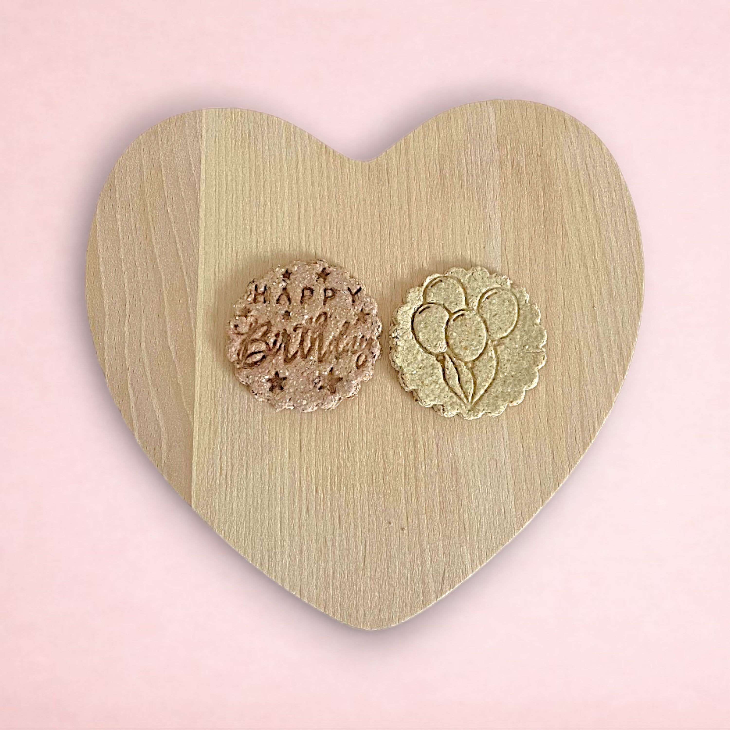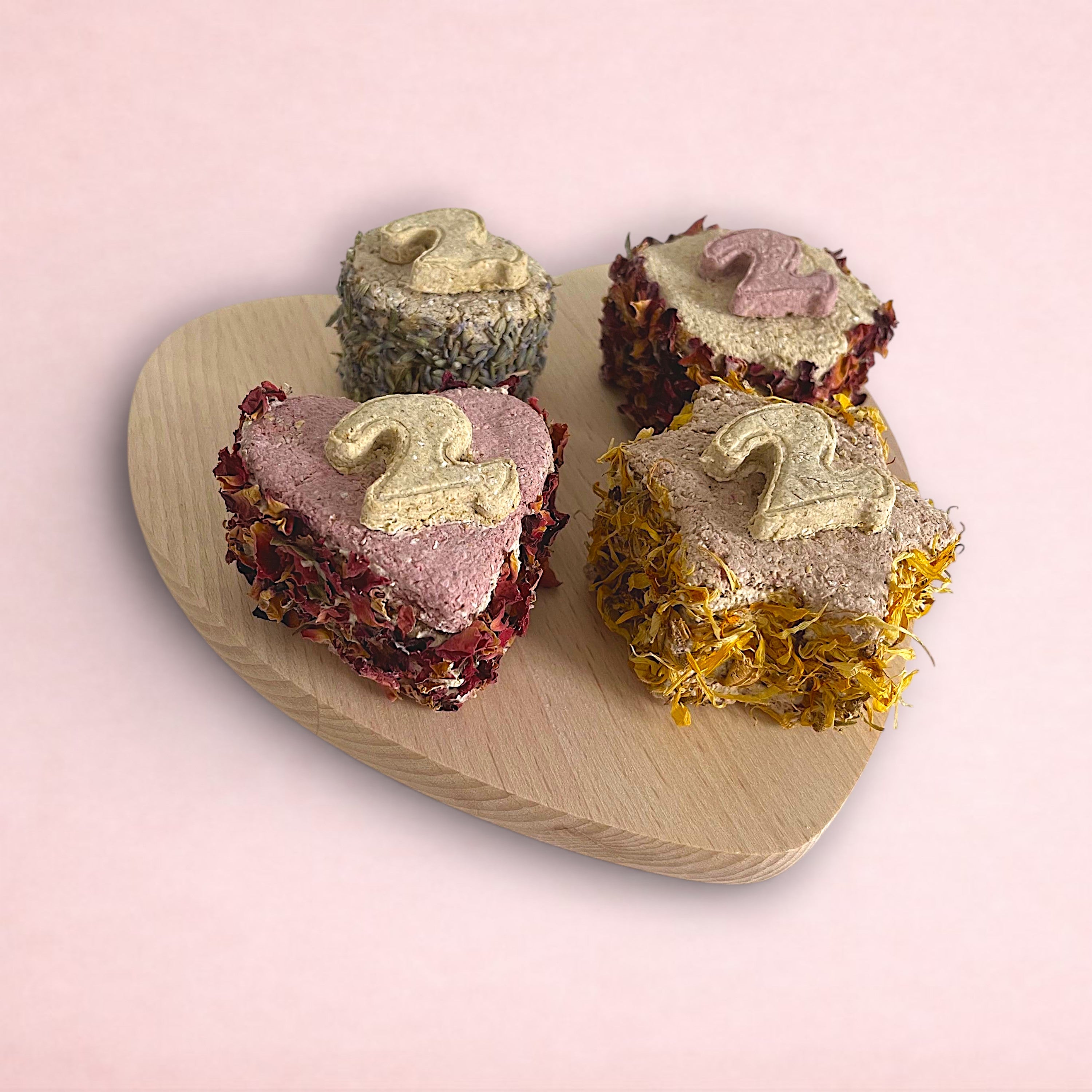 • Boredom Breakers with your choice of forage filling (balloon + "age" birthday) • Pack of 2 fruit and oat cookies (balloons + Happy Birthday). The two flavours for these treats will be the same as the flavours you choose for the cake!