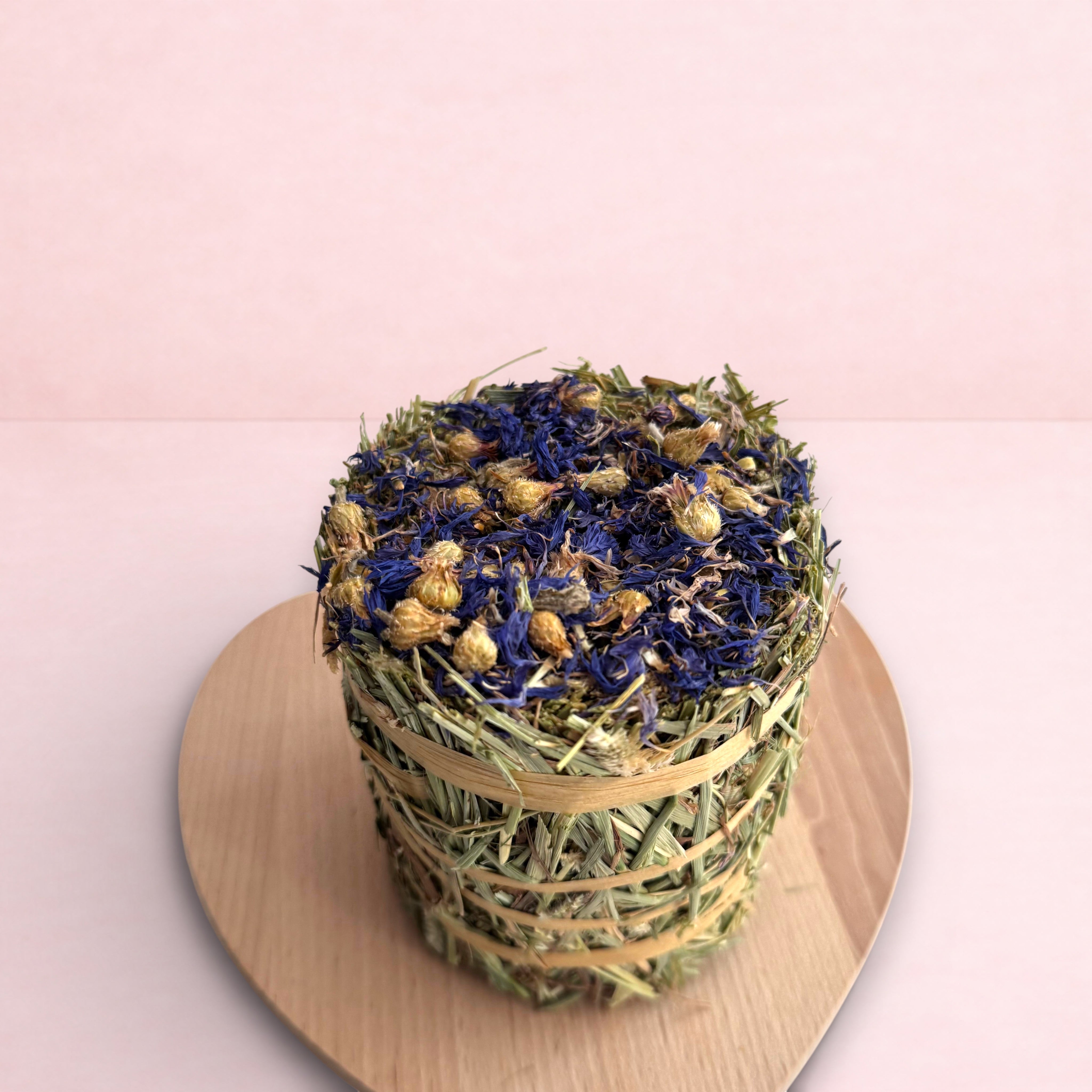 Composition: Canadian Timothy Hay, Blue Cornflower (4%), Rafia, Starch.