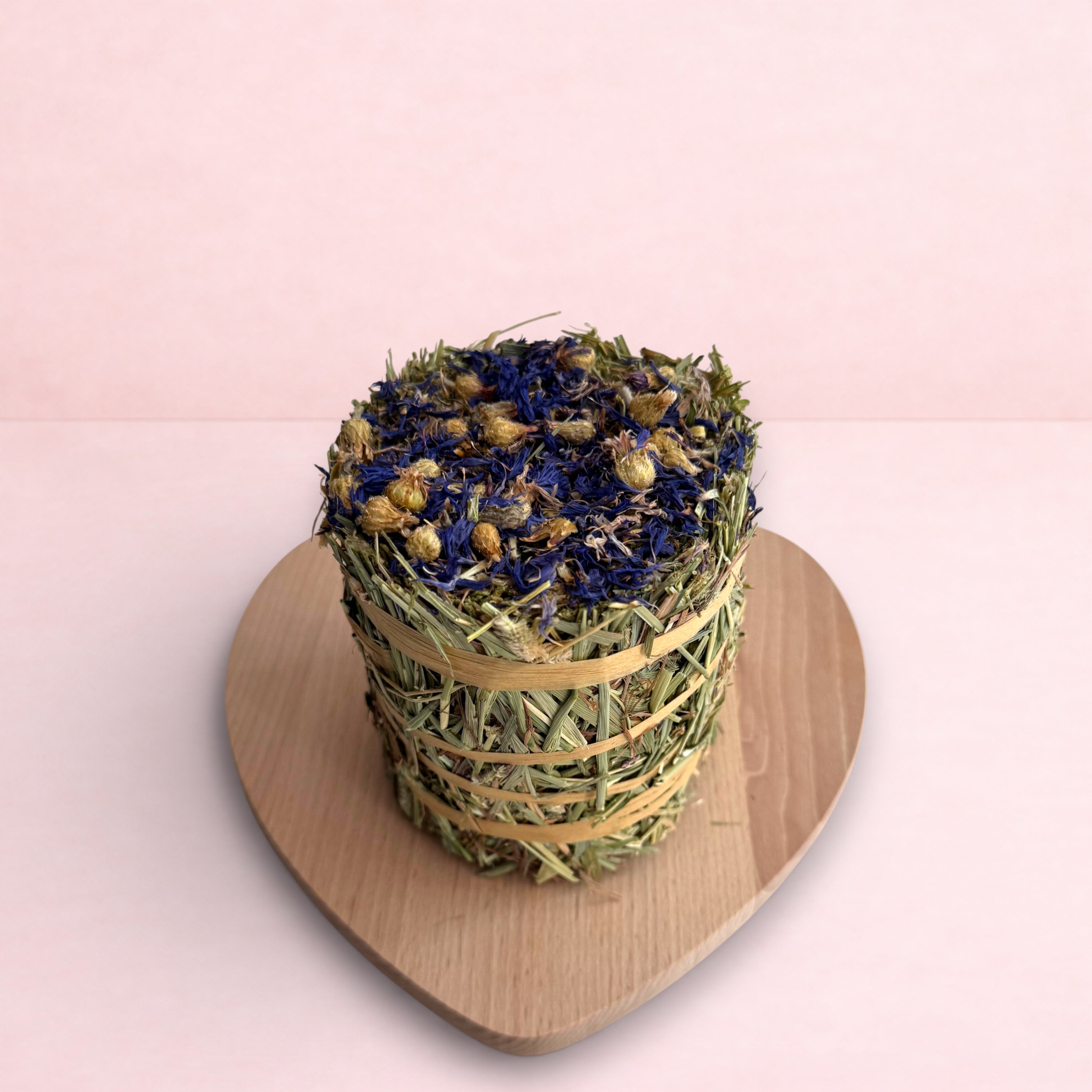 Made using only premium Canadian timothy hay, these hay rolls make a fantastic & nutritious enrichment treat that’s packed full of healthy dietary fibre! These beautiful rolls are formed under just the perfect amount of pressure to create a mini bale that’s bound using a 100% natural paper strap, then topped with a generous portion of blue cornflower.