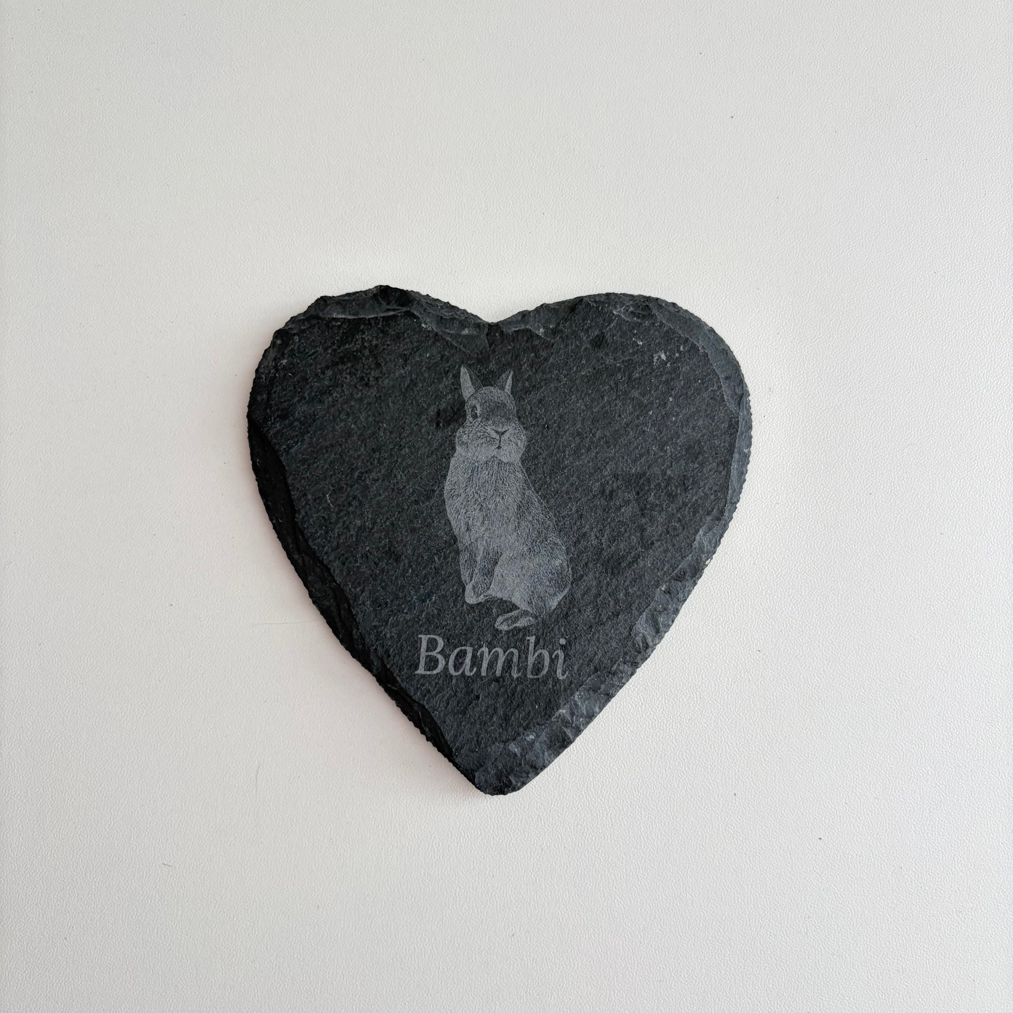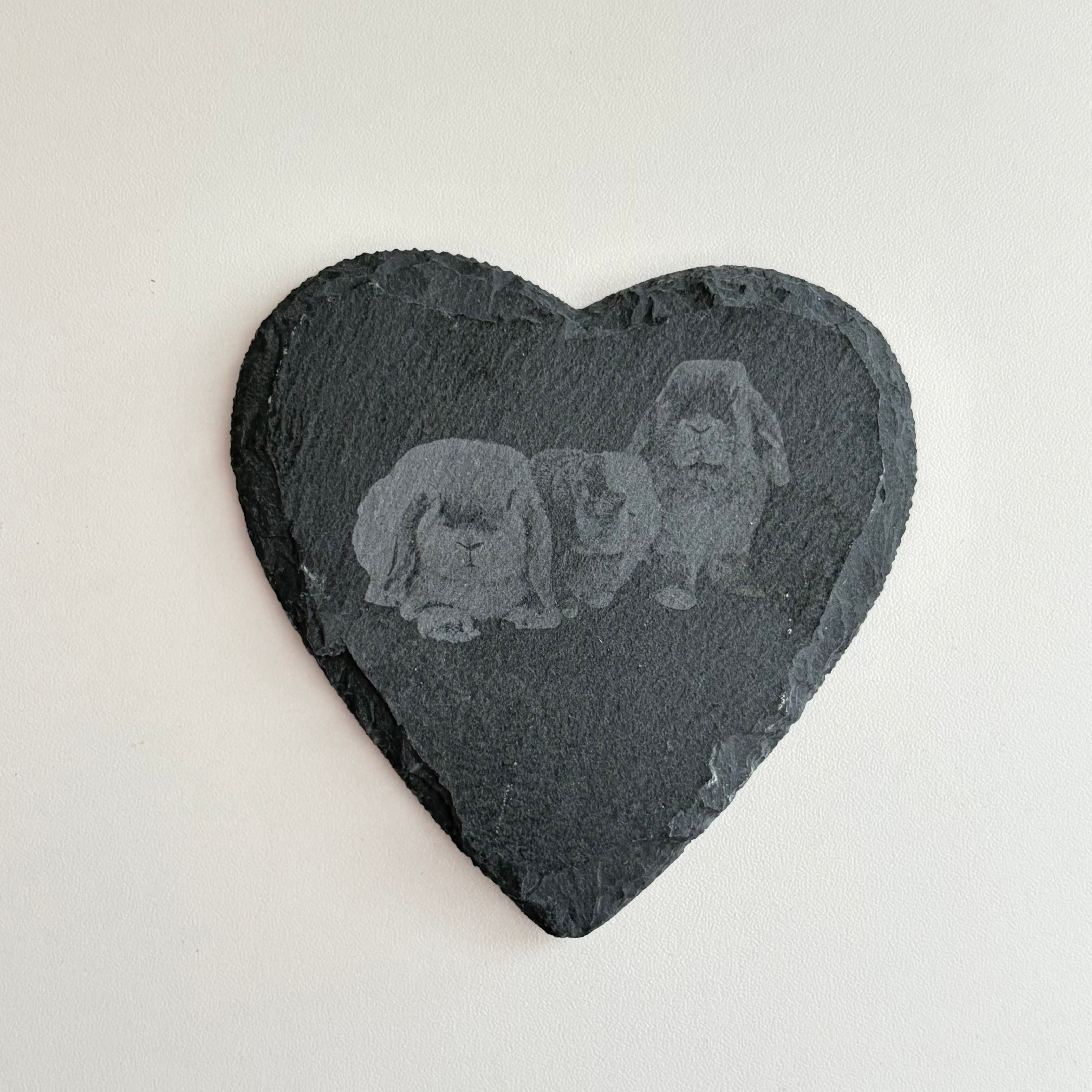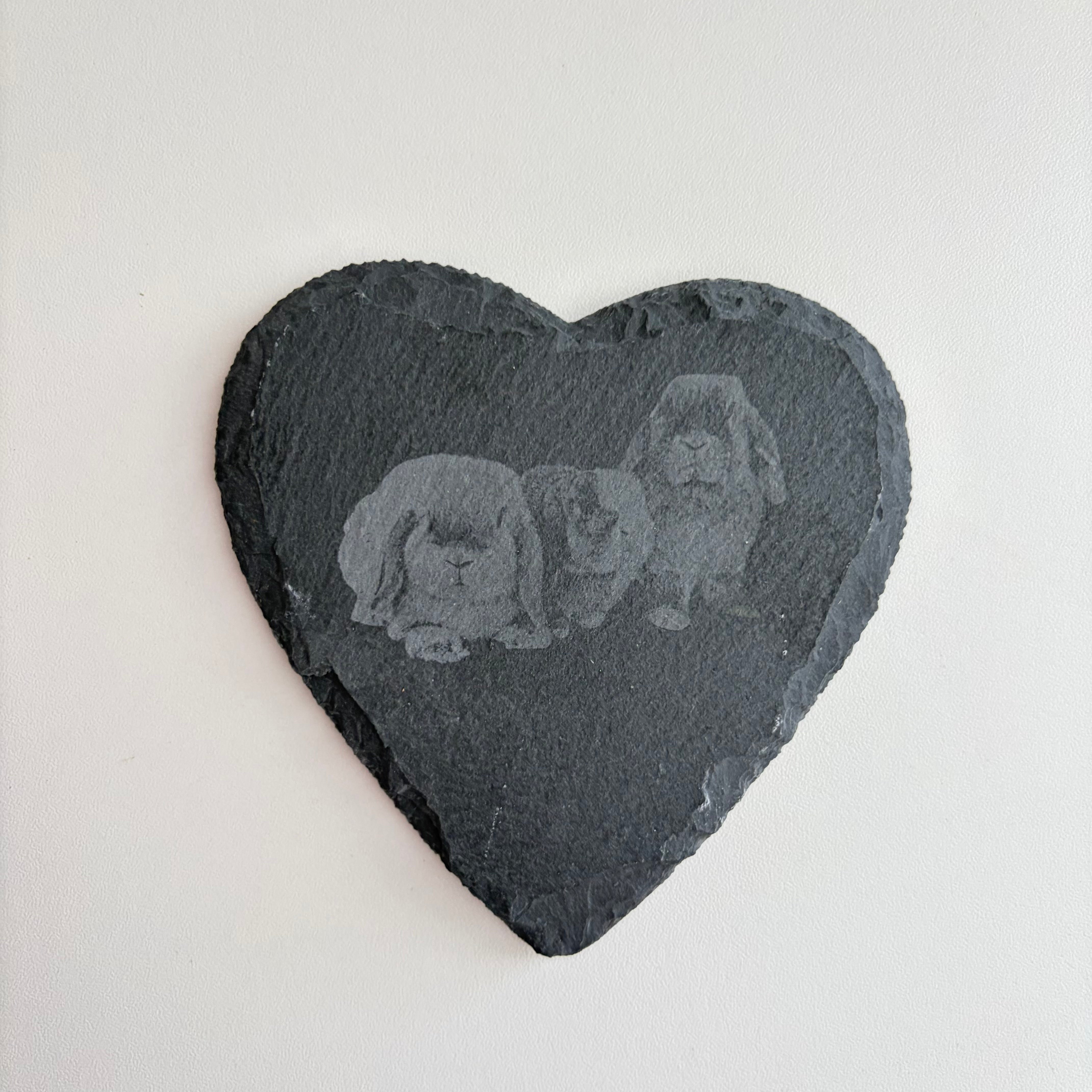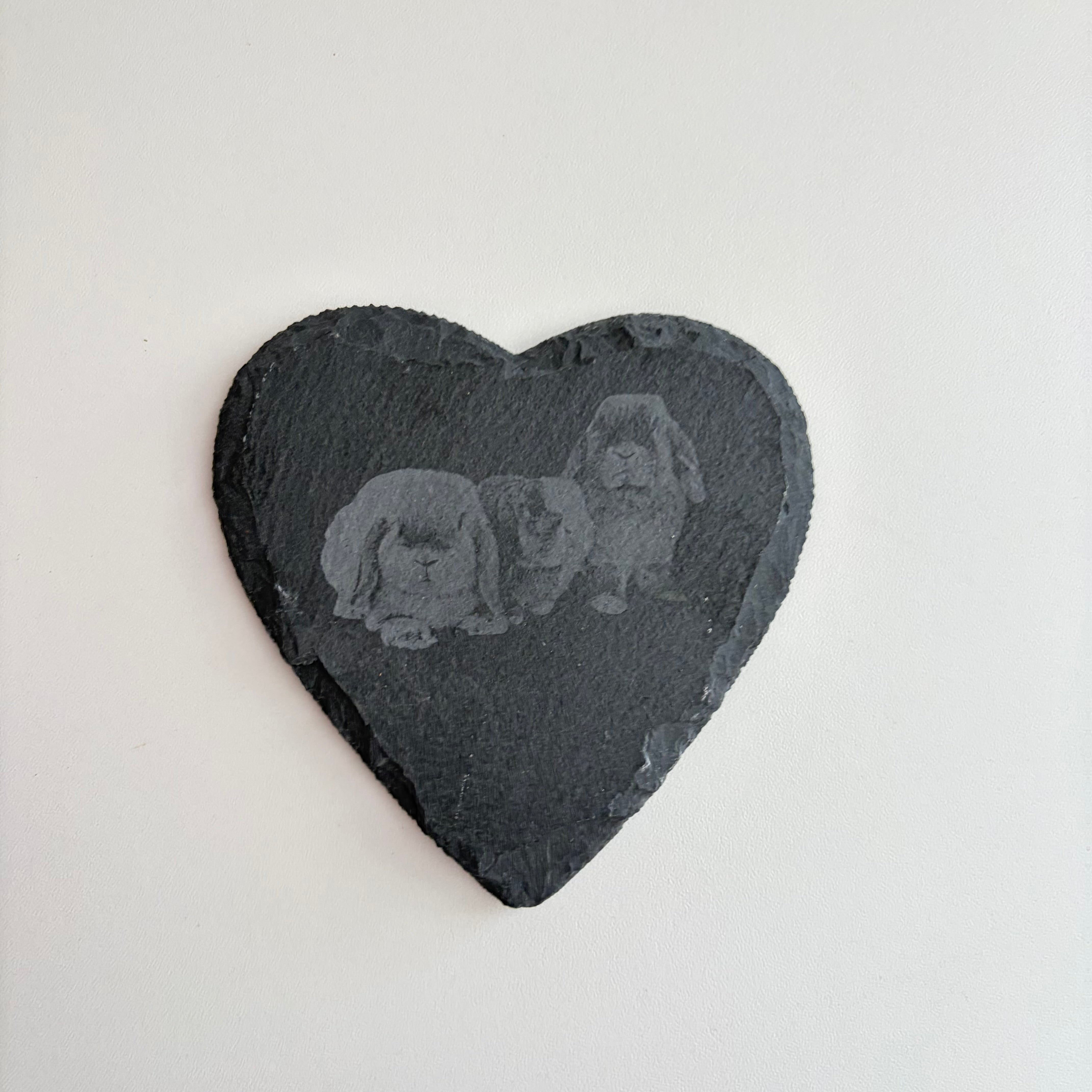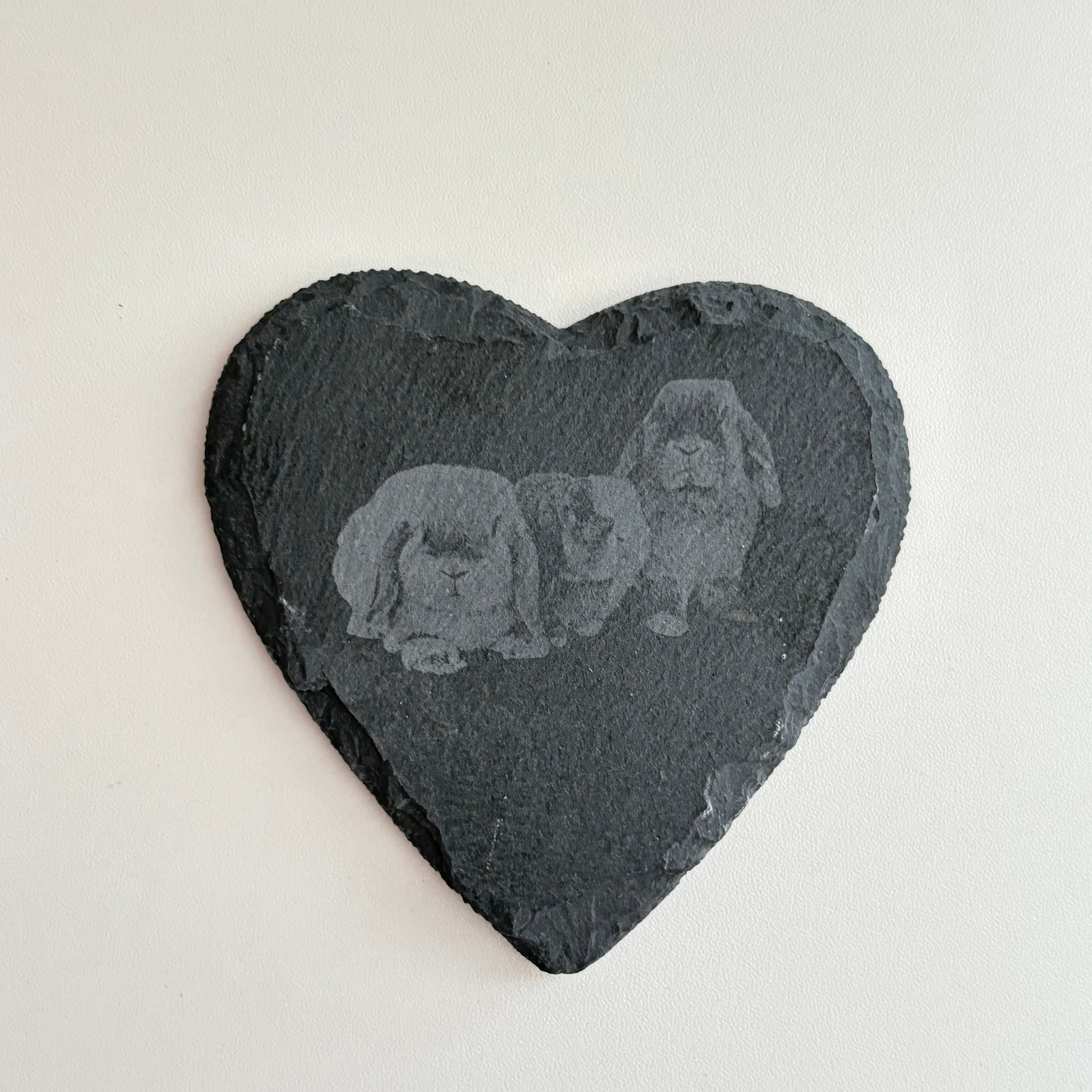 Treat your loved one (or yourself!) this Valentine's day with a personalised heart slate coaster, perfect for rabbit lovers and Christmas enthusiasts alike! Upload your chosen photo of up to 2 bunnies, with their names and optional heart symbols as seen in the product photo.