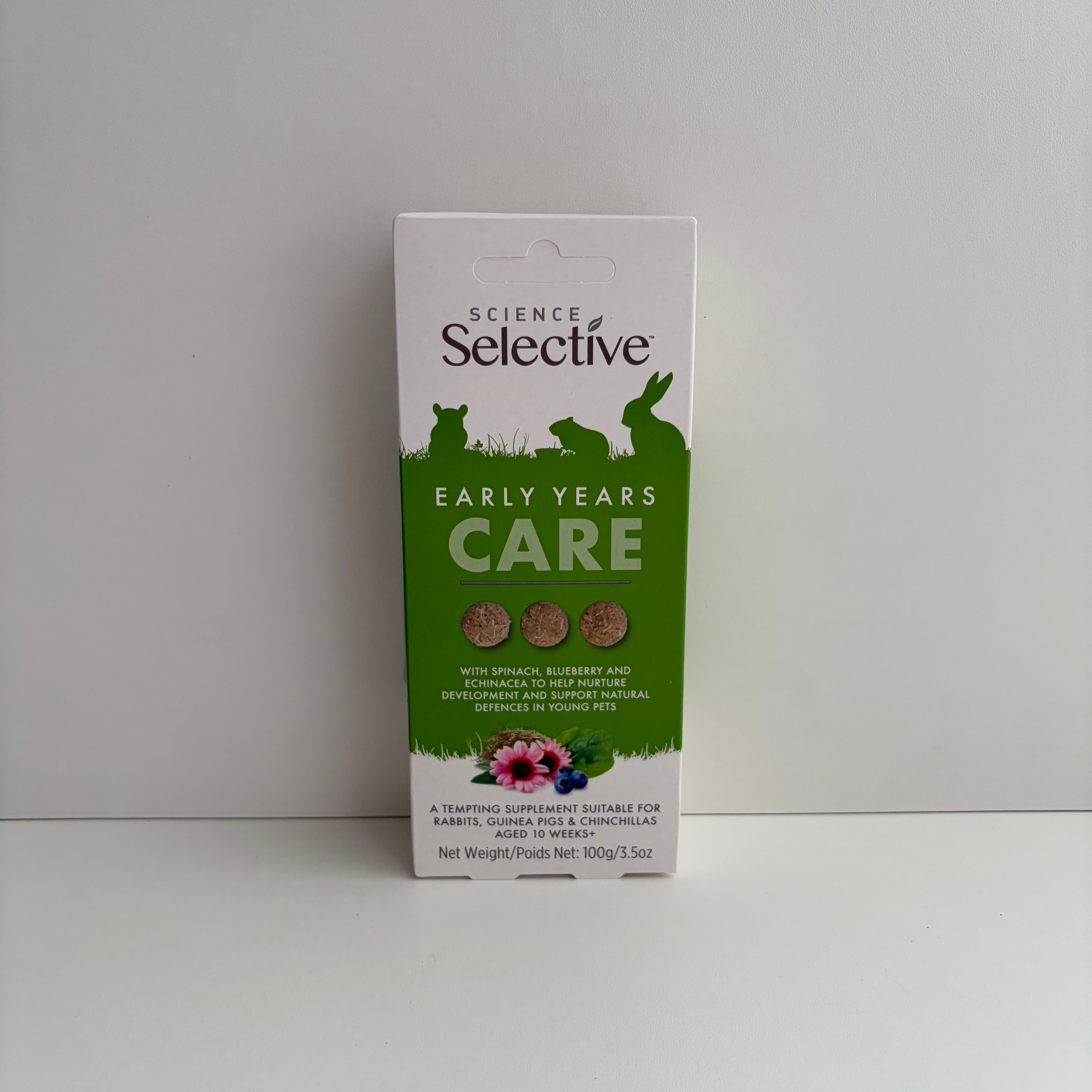 Science Selective Early Years Care Supplements are formulated to help nurture growth and natural defences with spinach, blueberry, and echinacea to help nurture development & support natural defences in young pets.